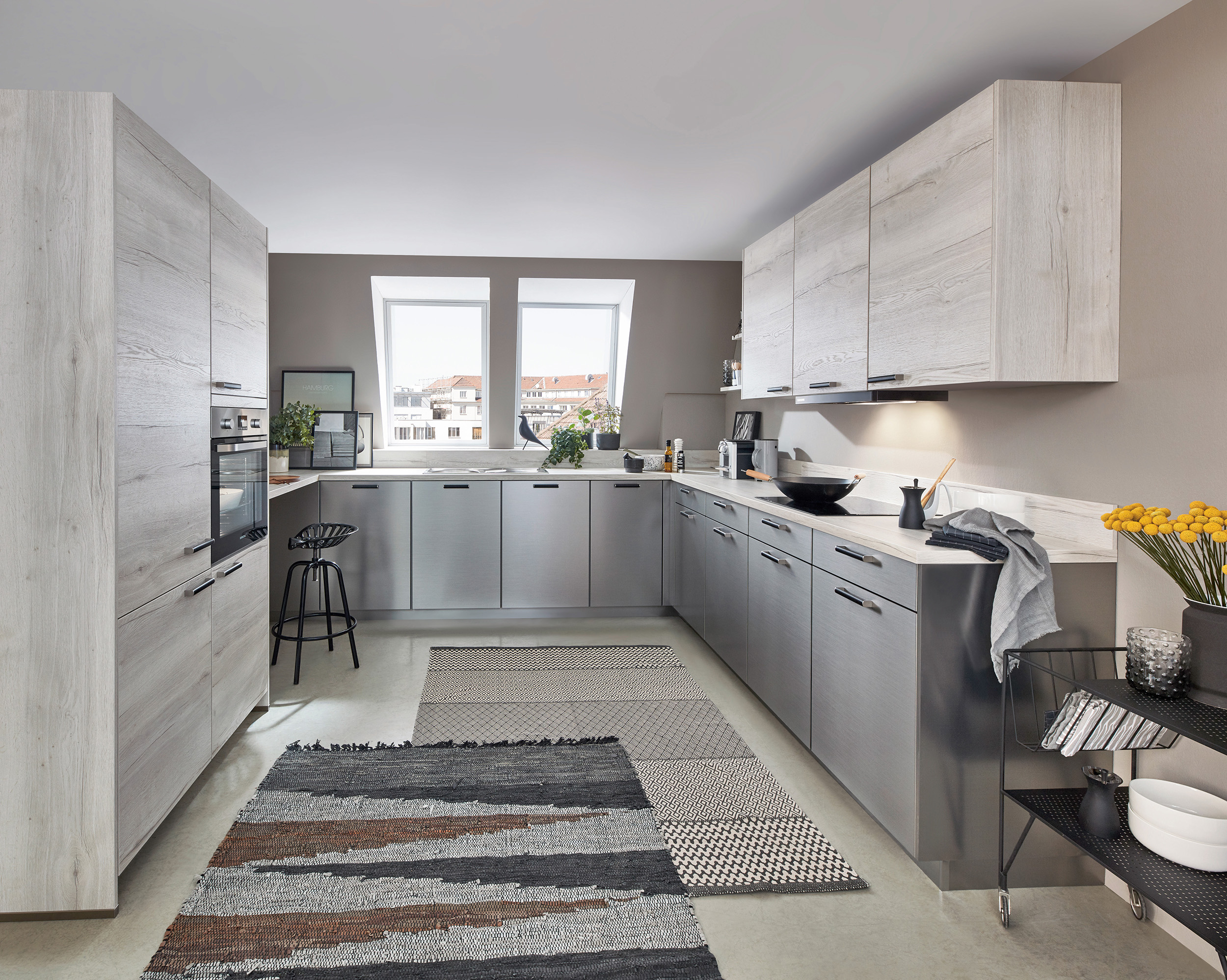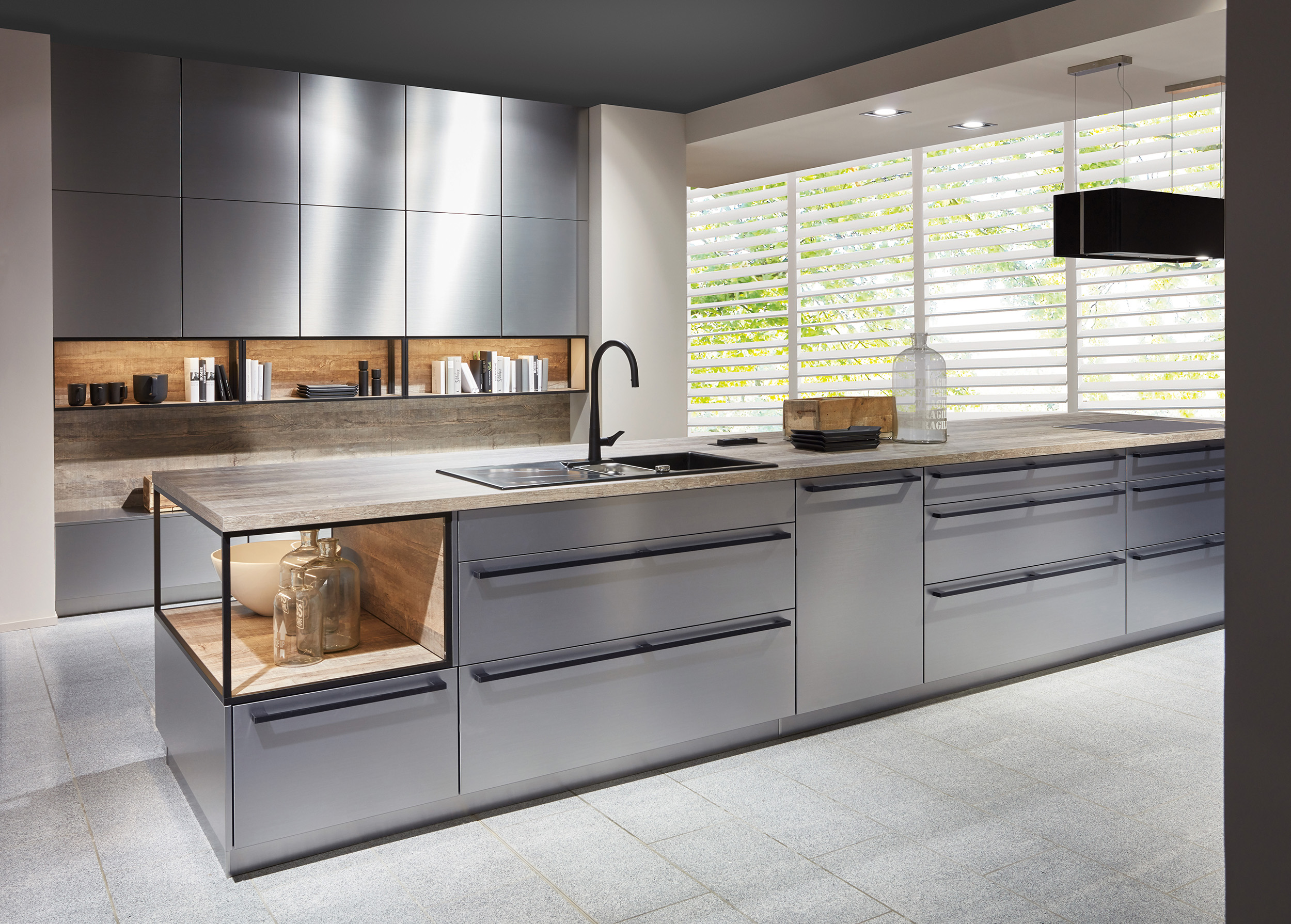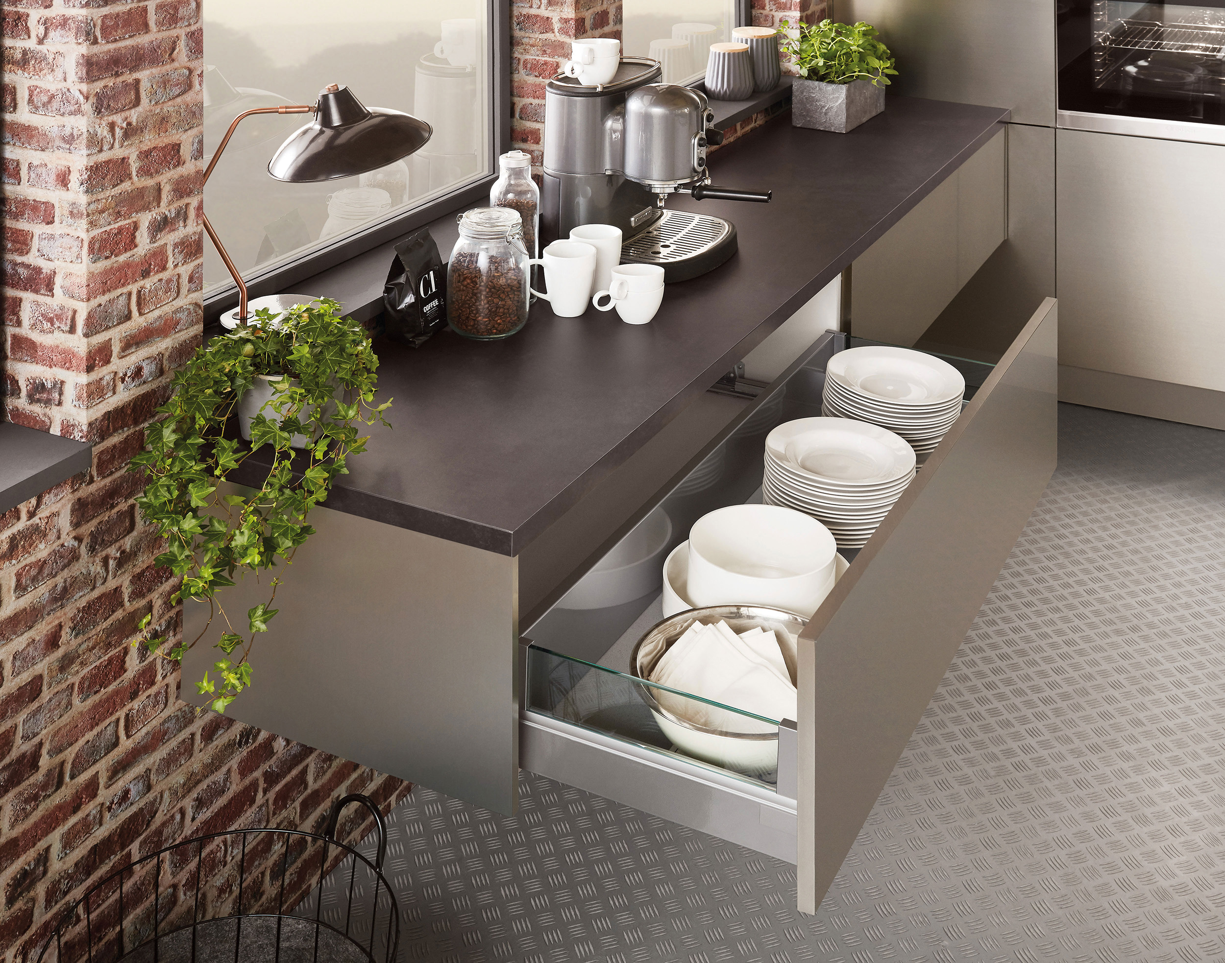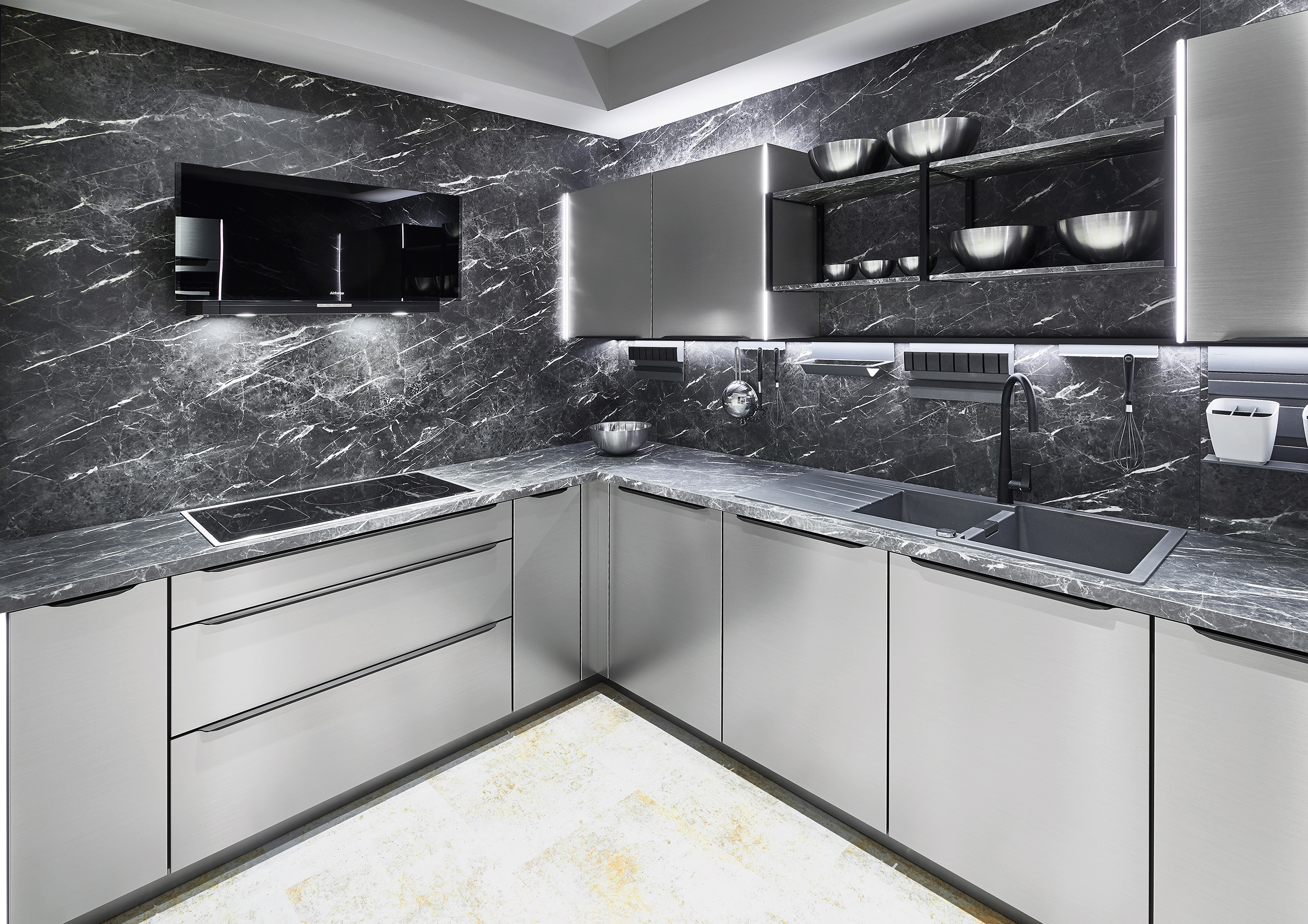 Frente postformado recubierto con lámina PET con lacado ultravioleta, horizontal con canto de polímero en el color del frente.