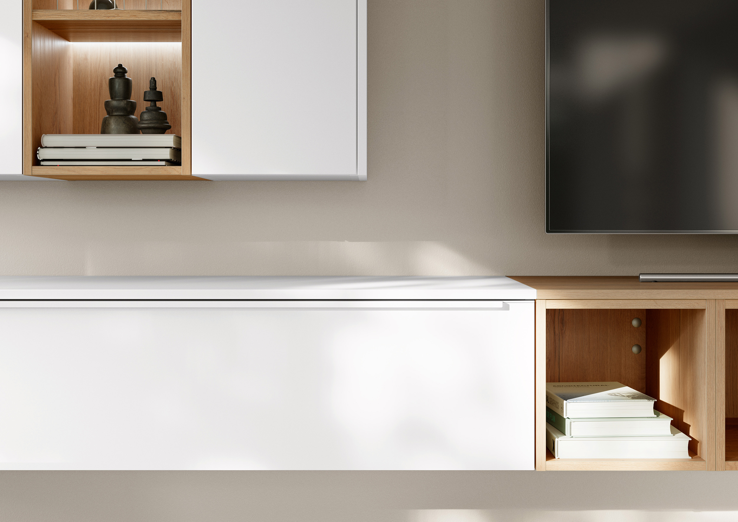 Frente postformado recubierto con lámina PET con lacado ultravioleta, horizontal con canto de polímero en el color del frente.
