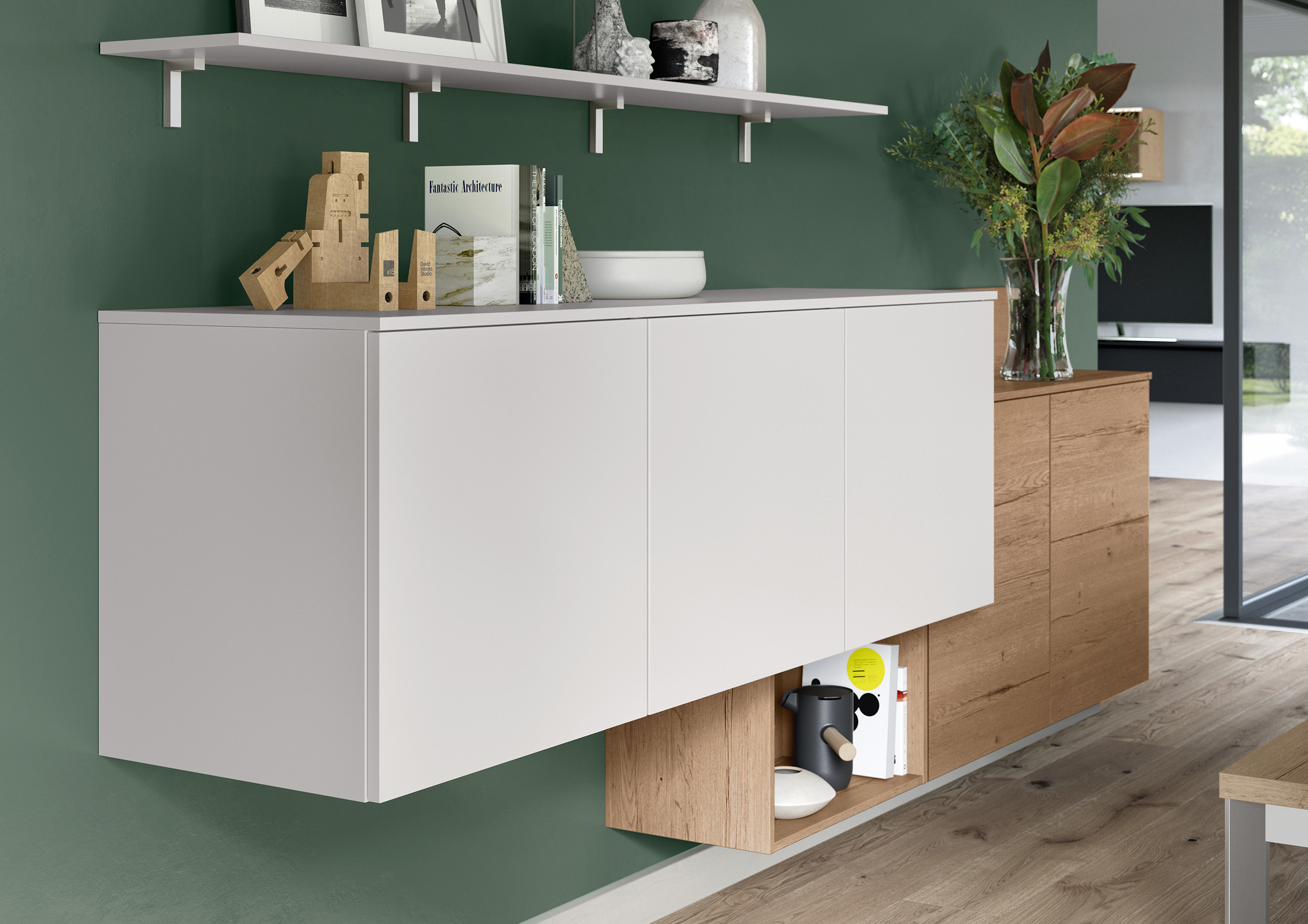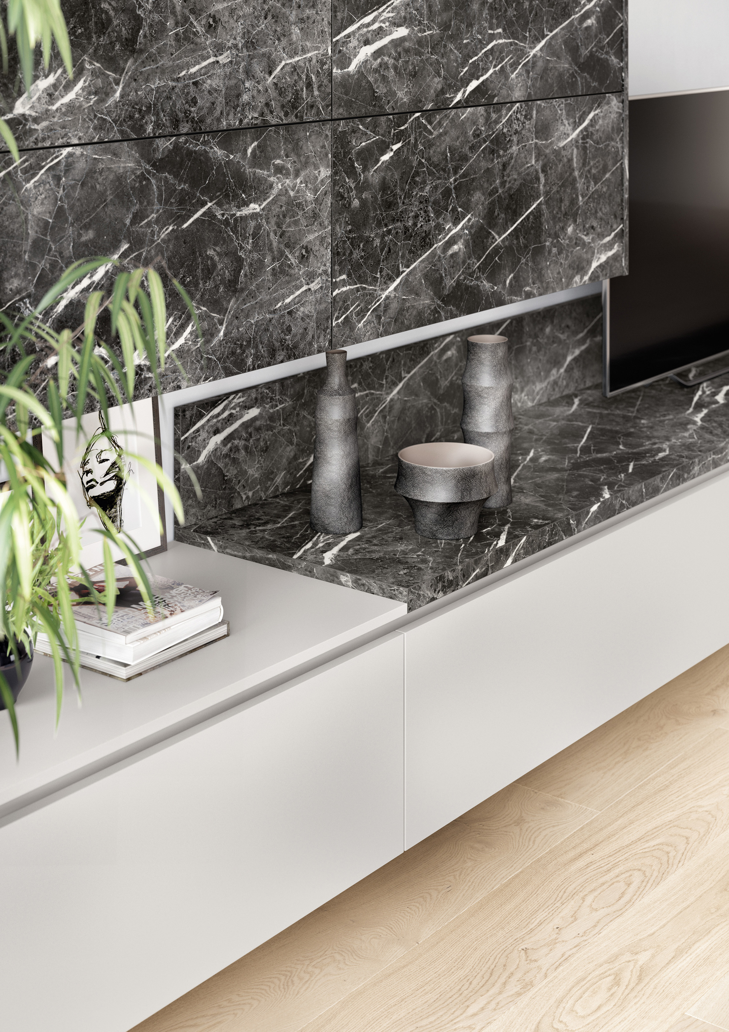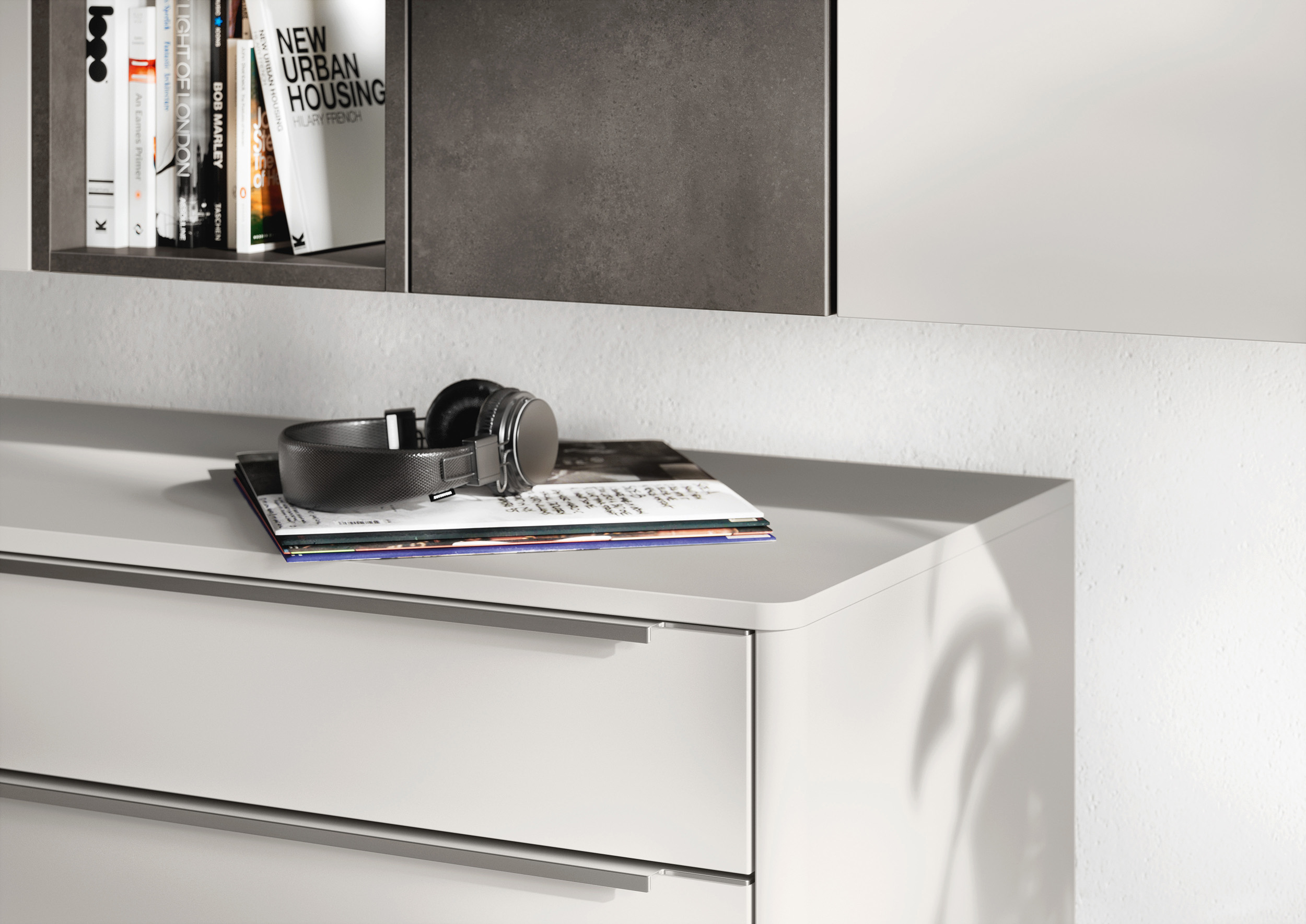 Frente postformado recubierto con lámina PET con lacado ultravioleta, horizontal con canto de polímero en el color del frente.
