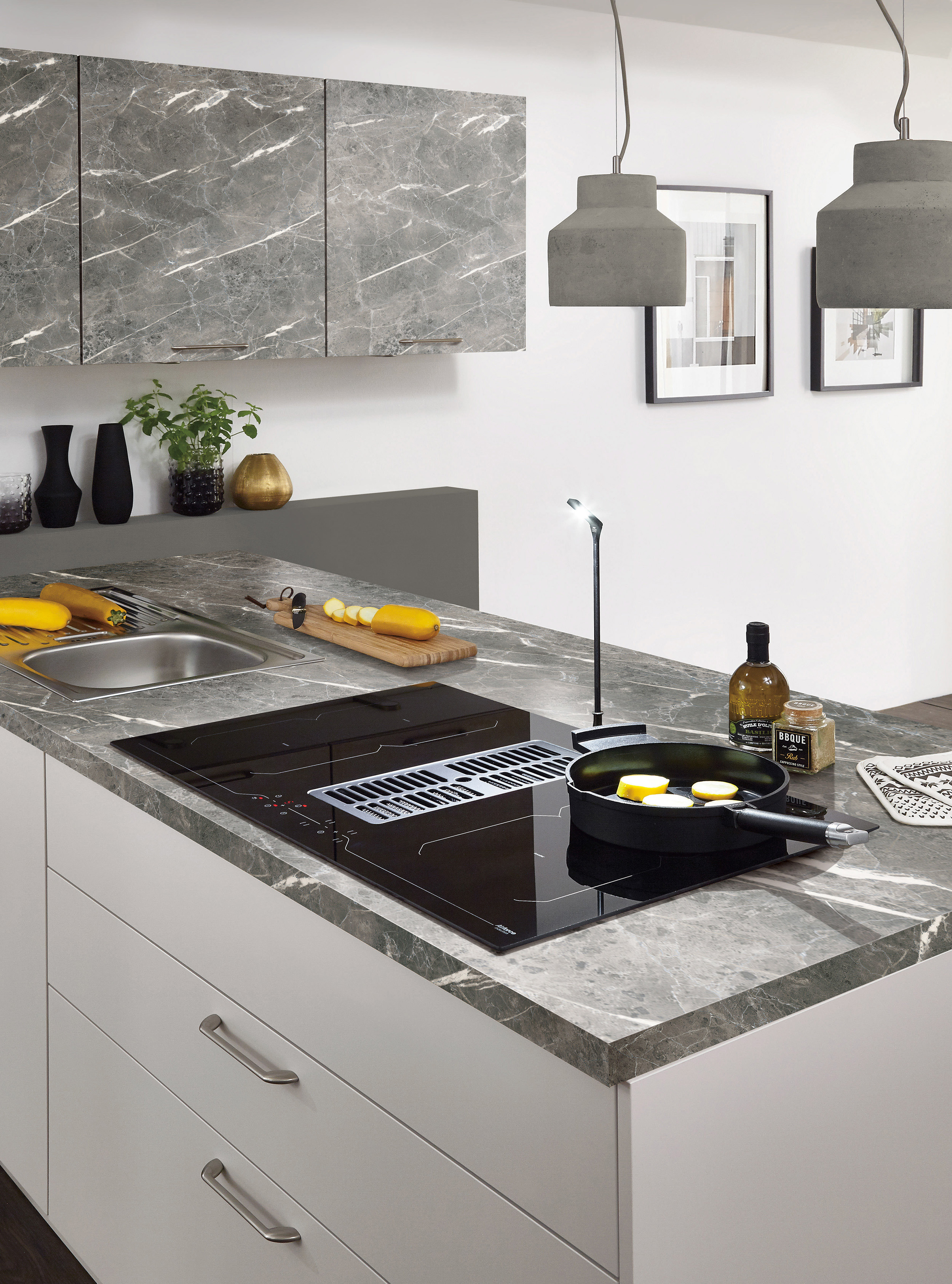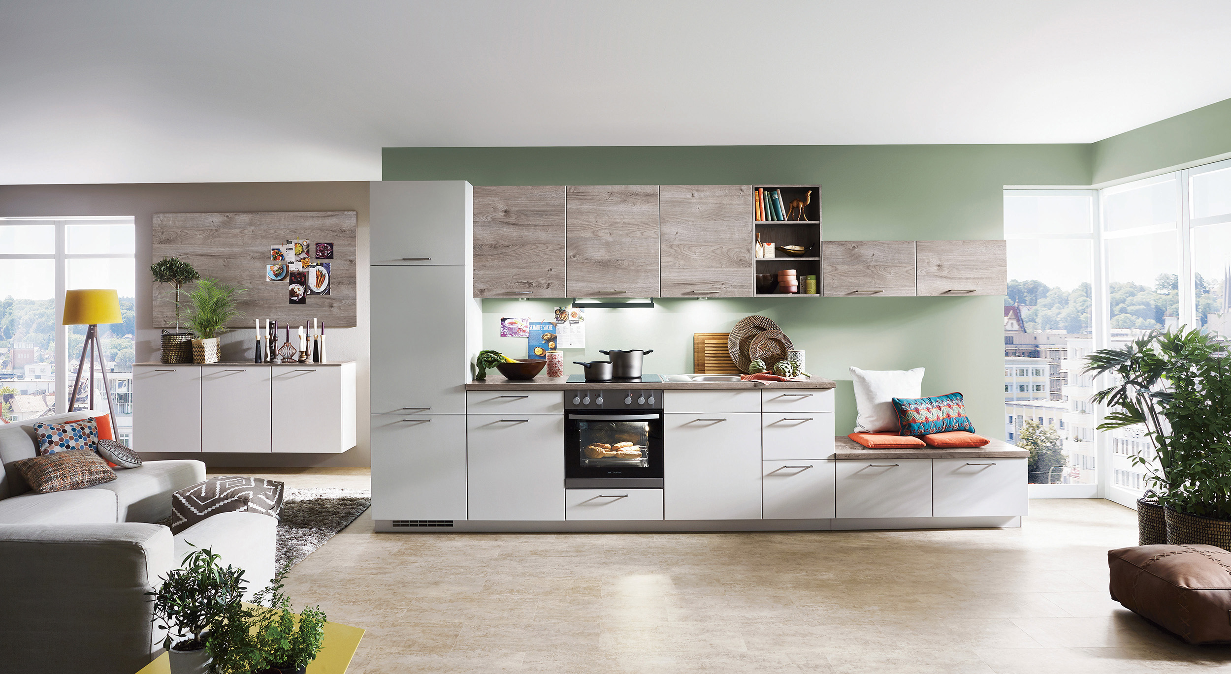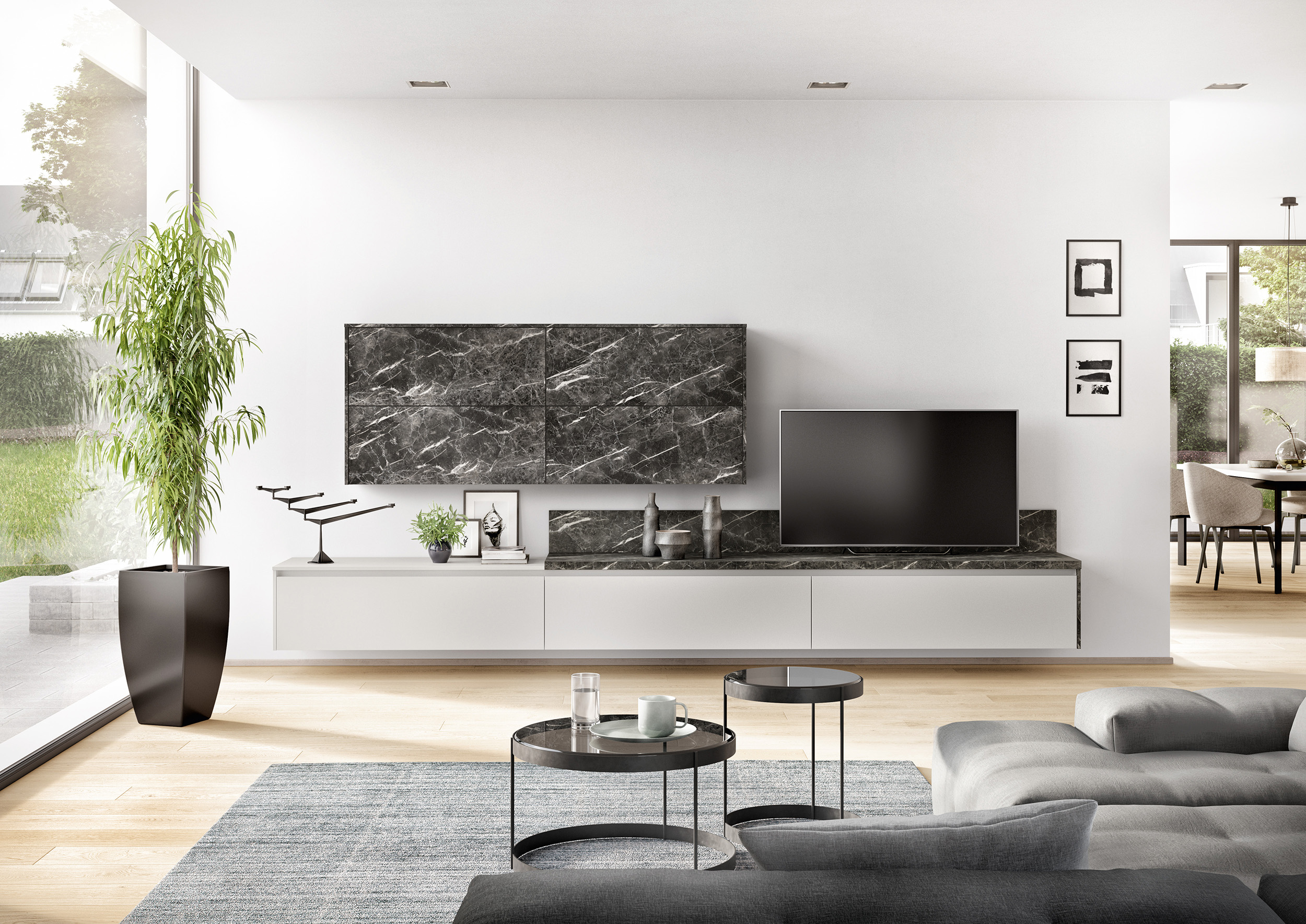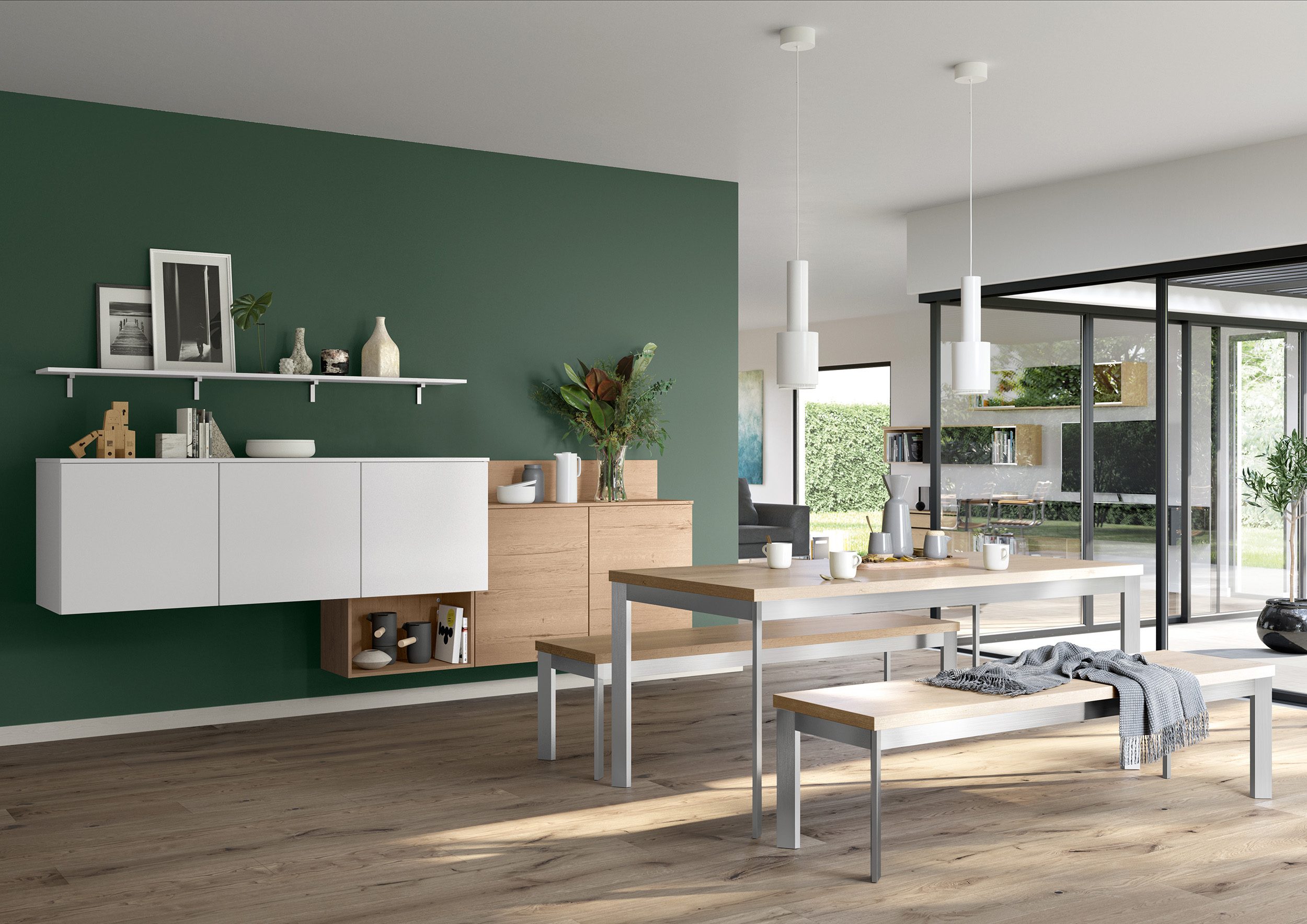 Frente postformado recubierto con lámina PET con lacado ultravioleta, horizontal con canto de polímero en el color del frente.