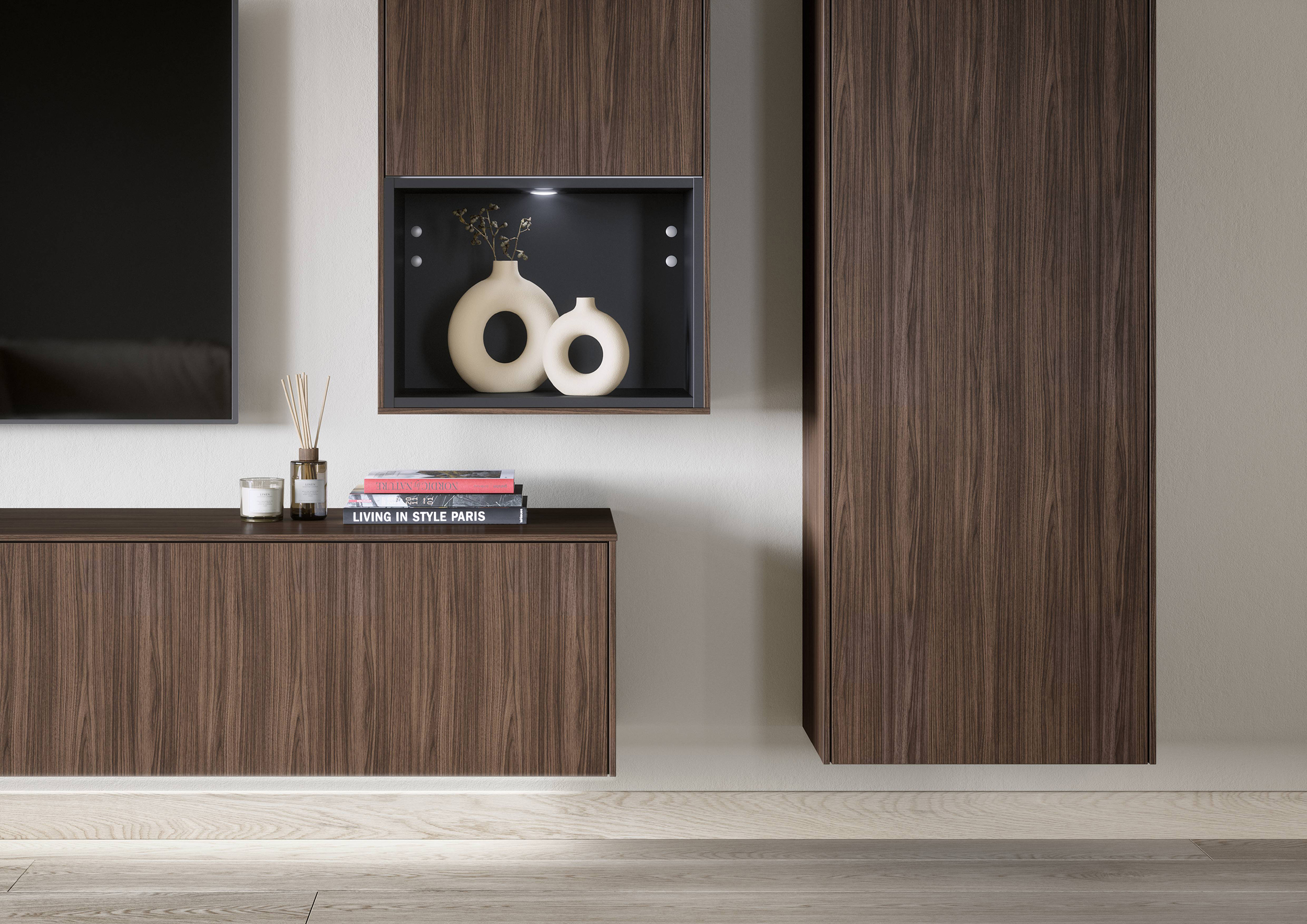 Recubierto por ambos lados con resina laminada, alrededor con canto de polímero en el color del frente. Lado interior de la puerta en el color del frente.