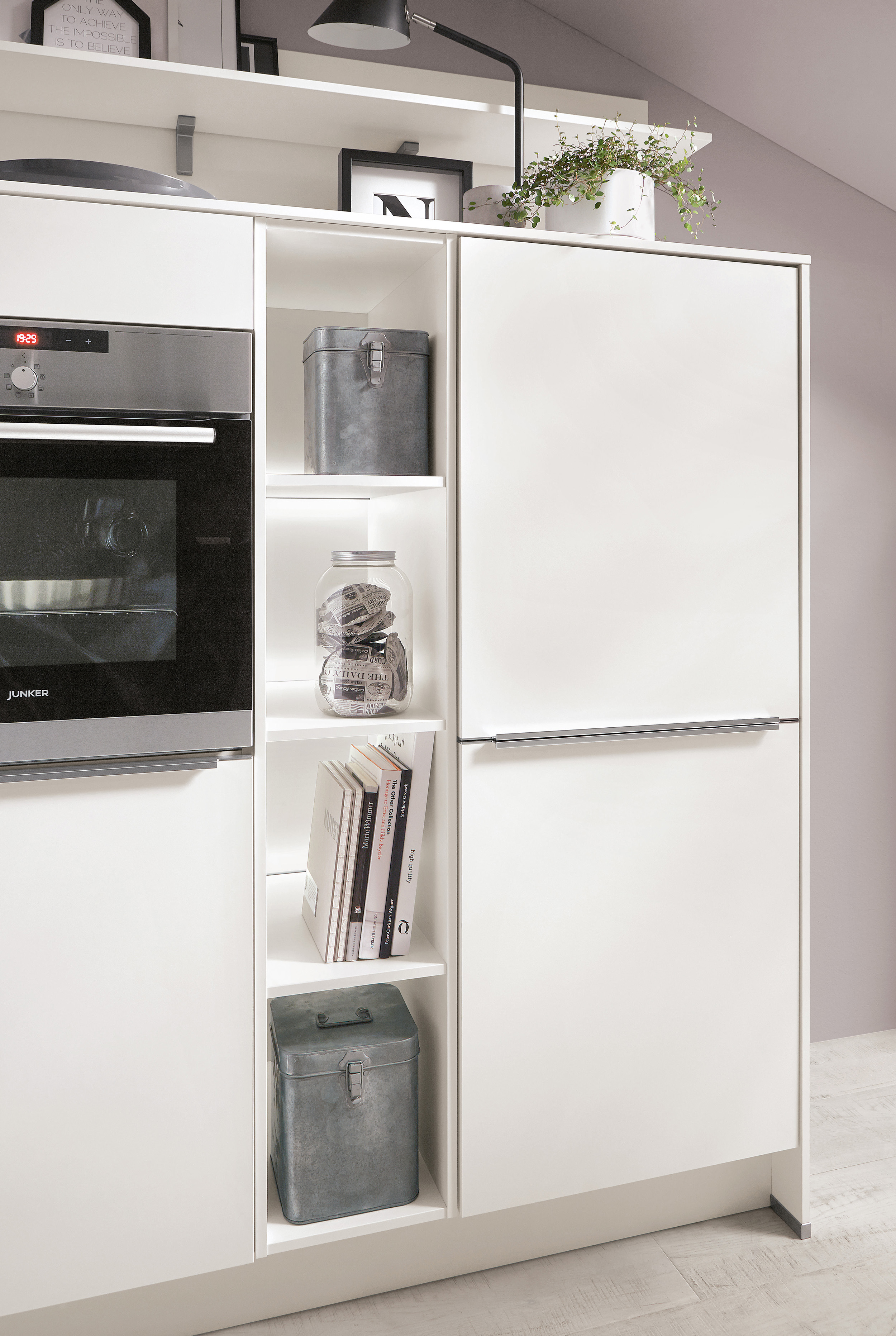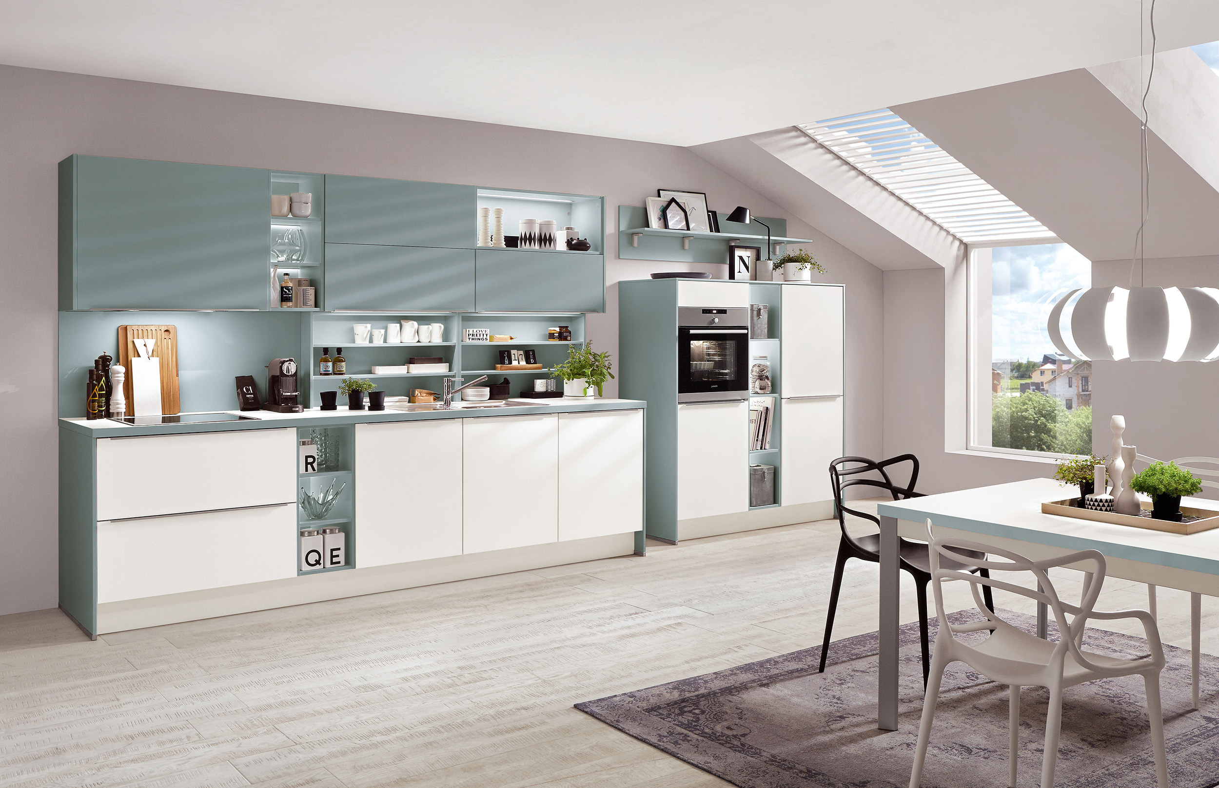 Recubierto por ambos lados con resina laminada, alrededor con canto soldado por láser en el color del frente. Lado interior de la puerta en el color del frente.