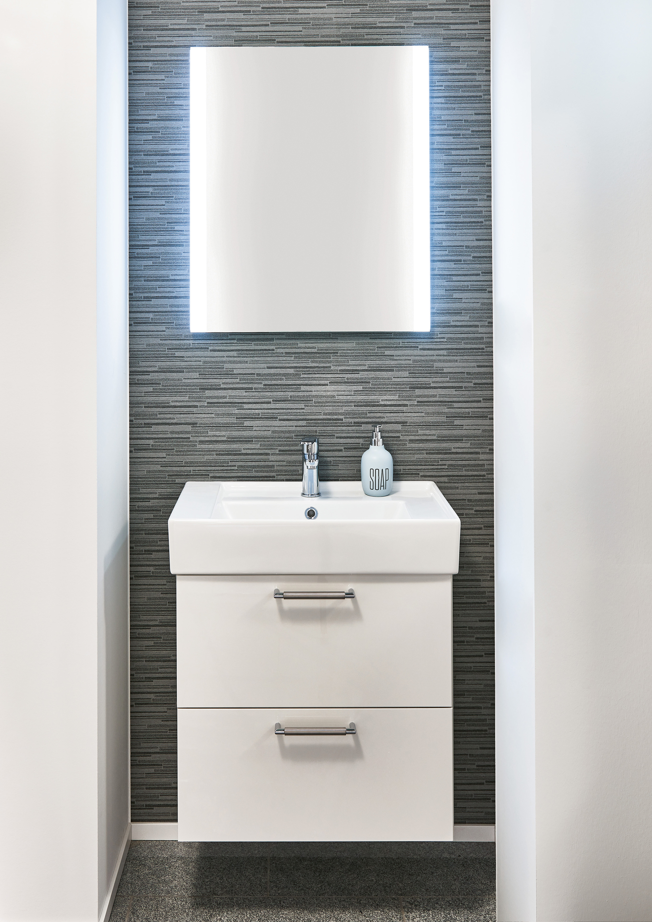 Frente postformado recubierto con lámina PET con lacado ultravioleta, horizontal con canto de polímero en el color del frente.
