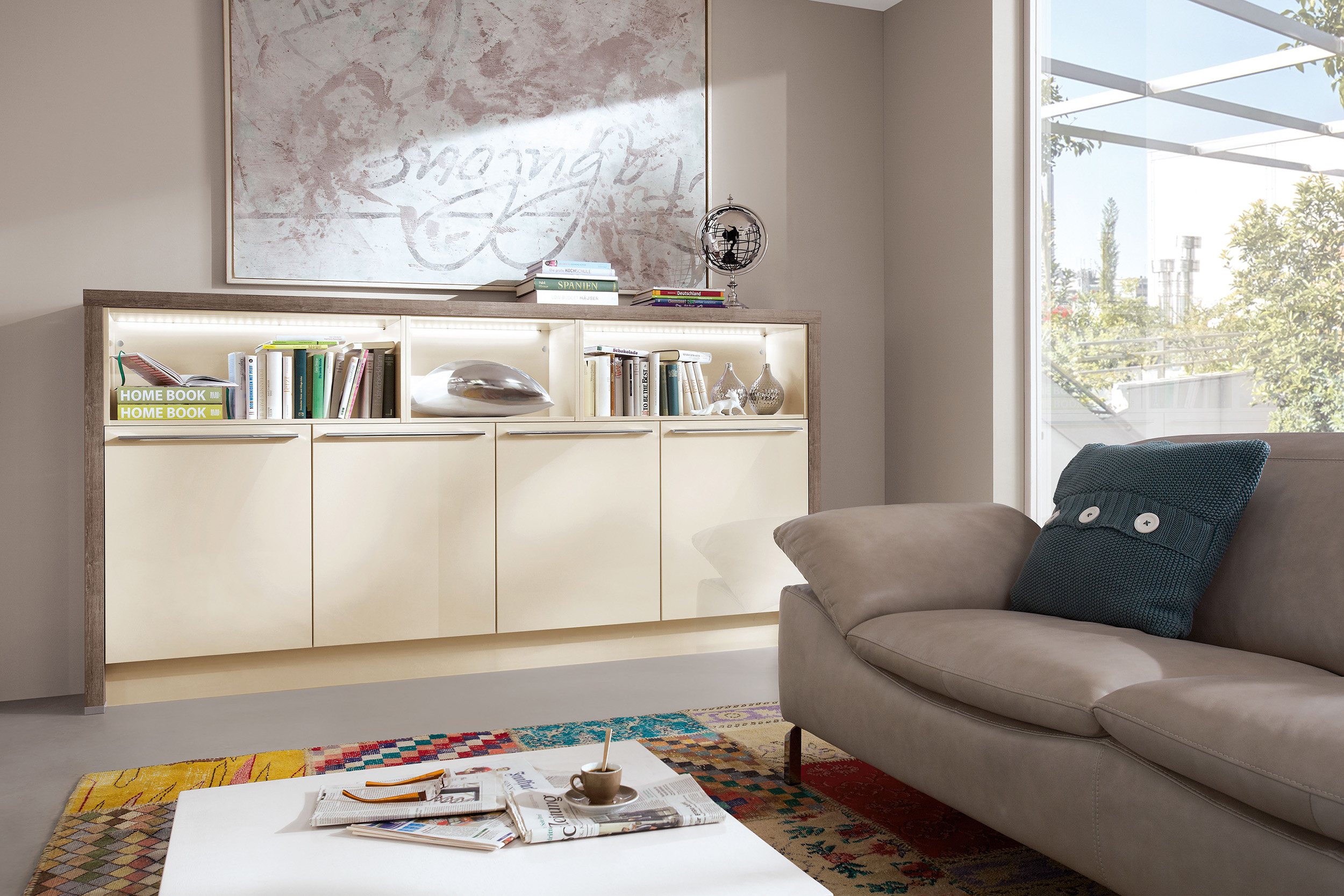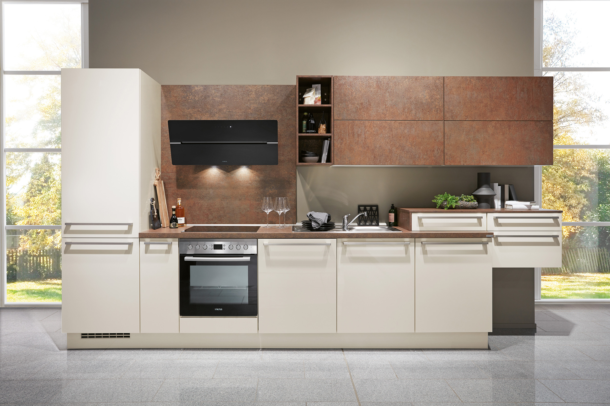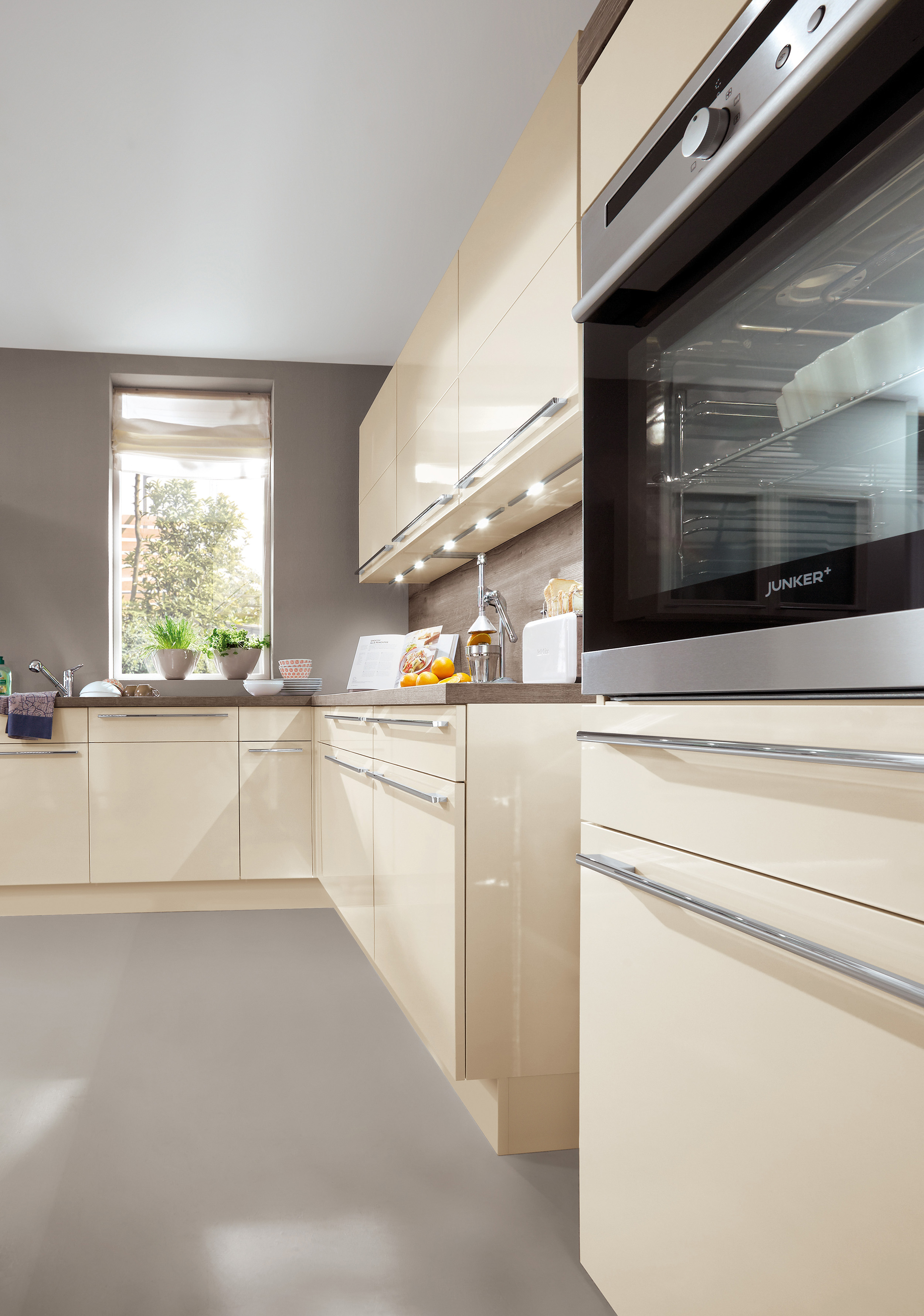 Frente postformado recubierto con lámina PET con lacado ultravioleta, horizontal con canto de polímero en el color del frente.