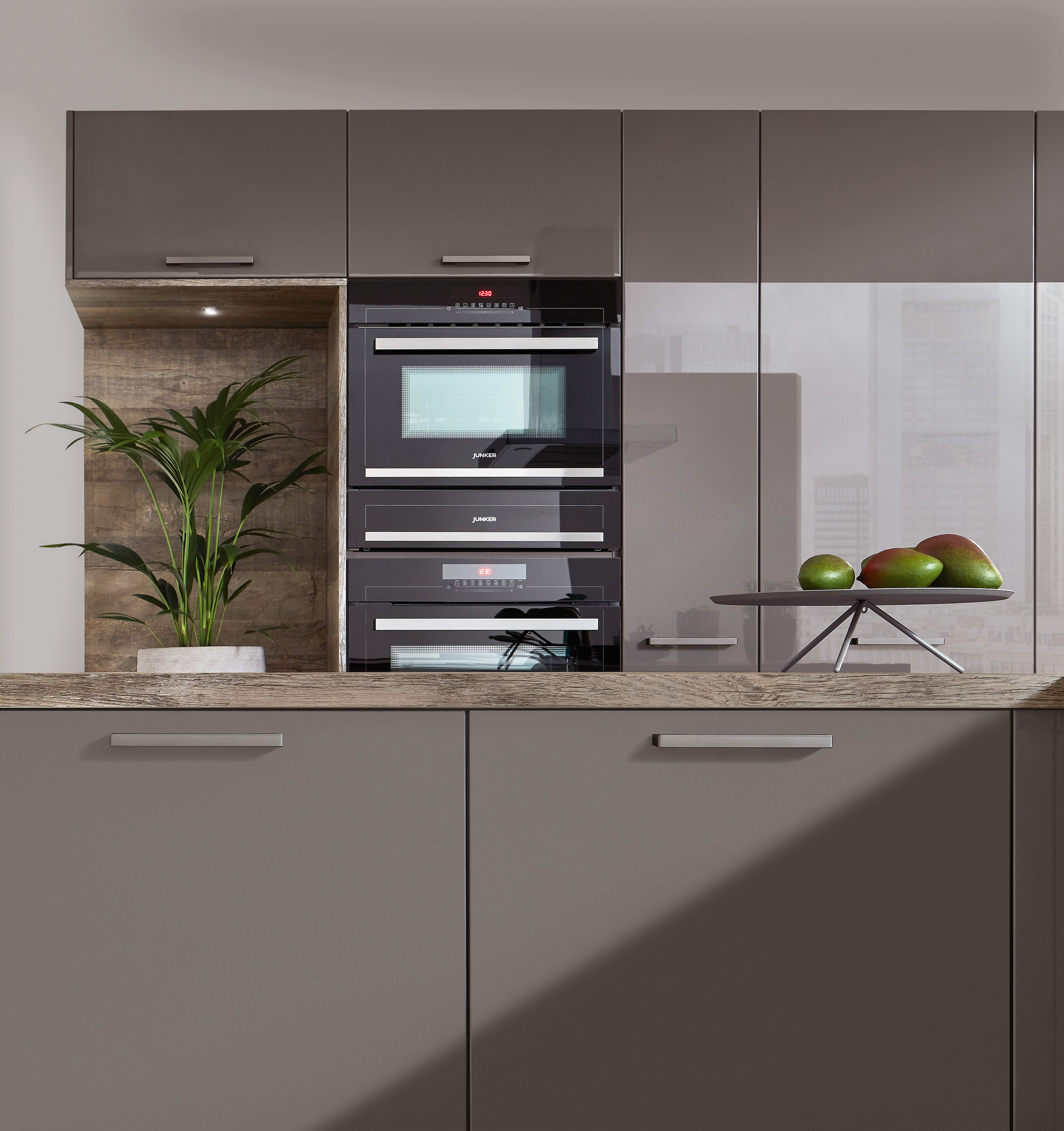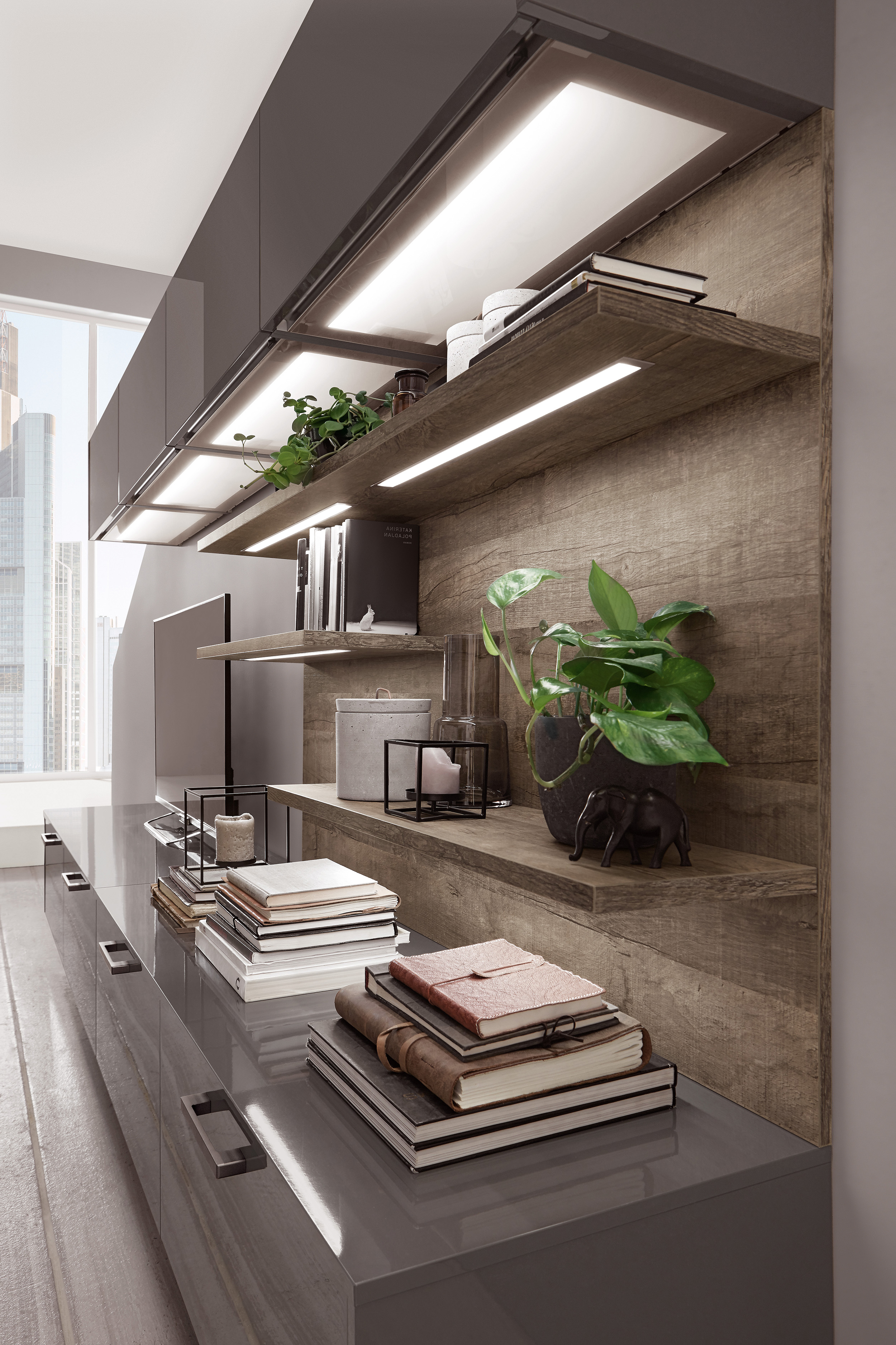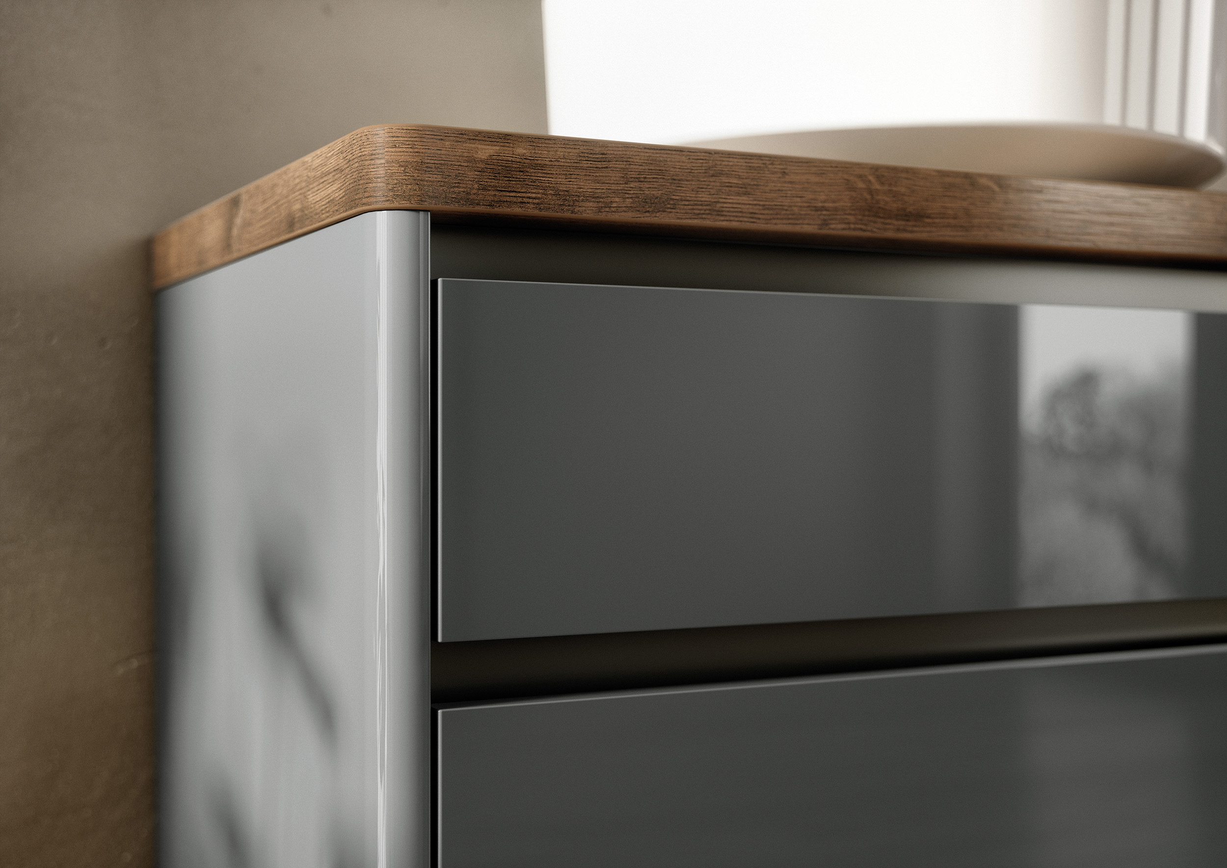 Frente postformado recubierto con lámina PET con lacado ultravioleta, horizontal con canto de polímero en el color del frente.
