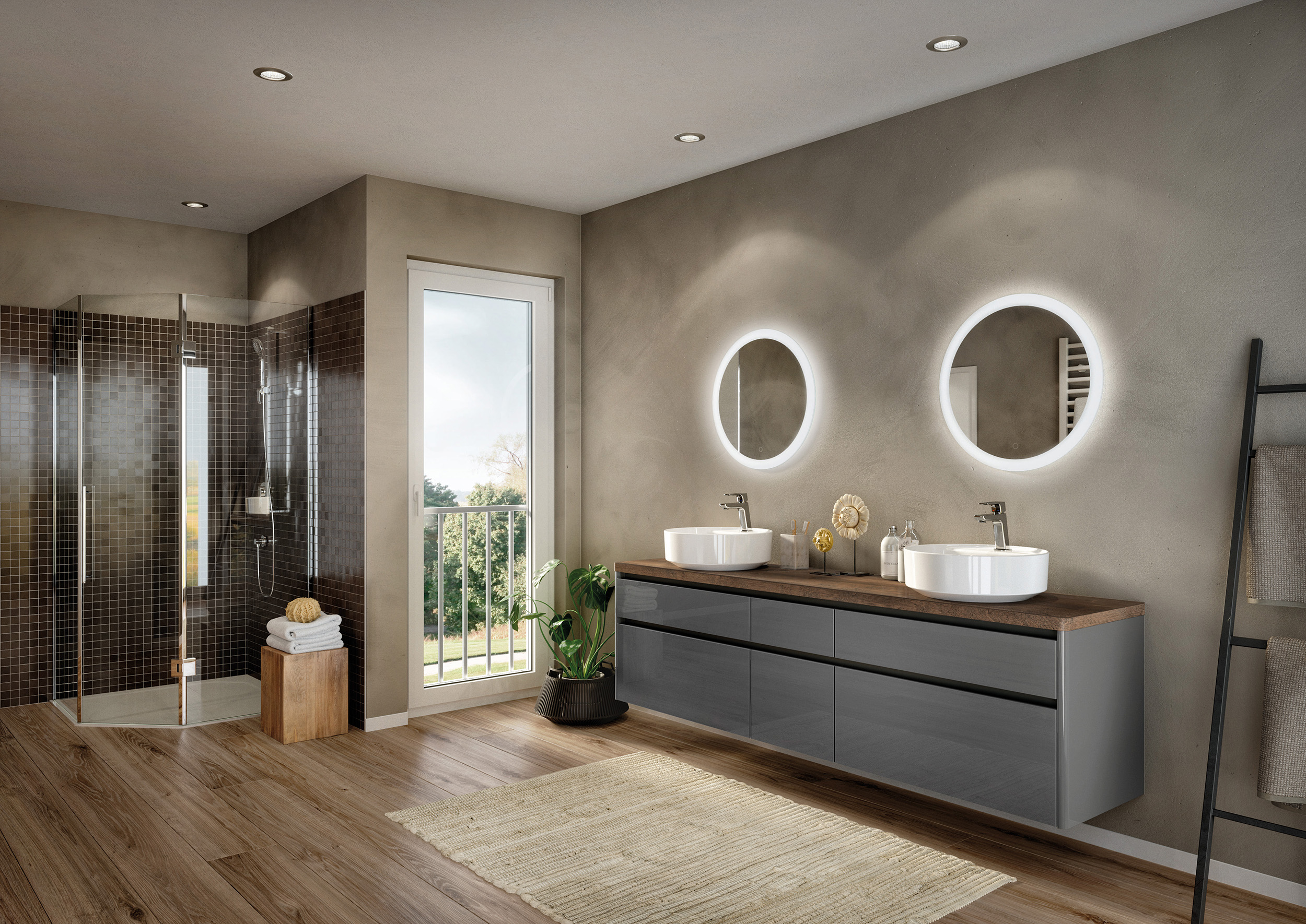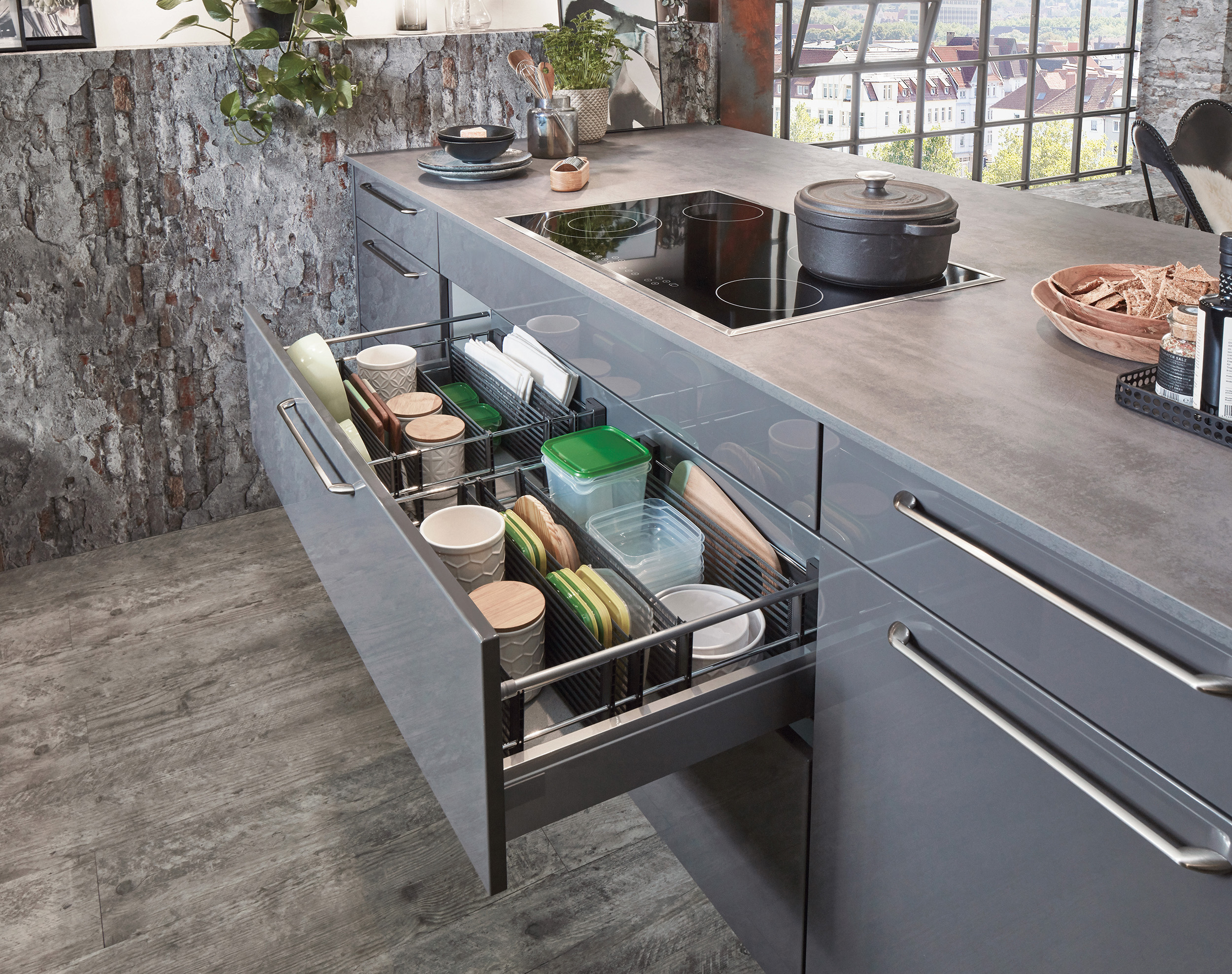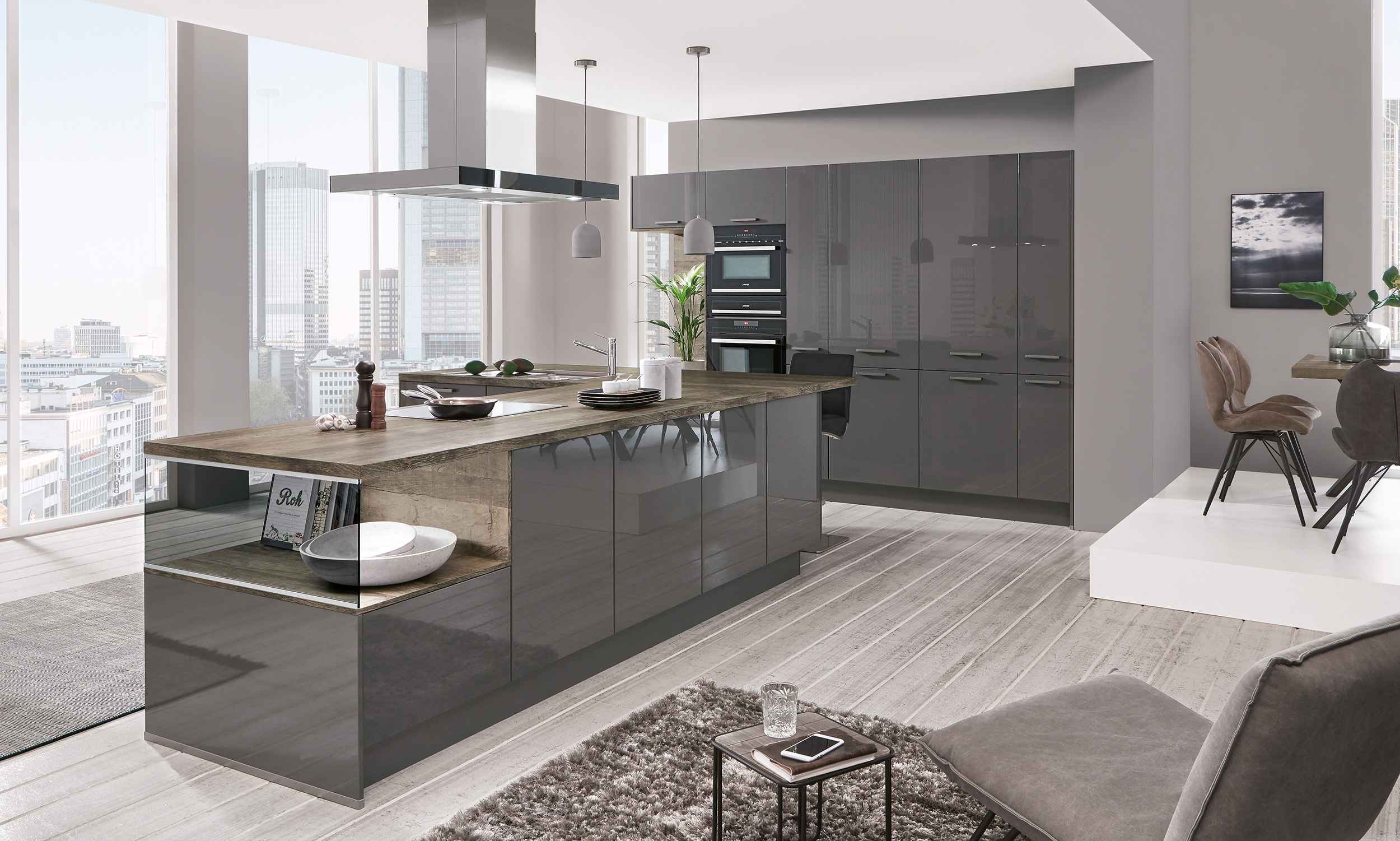 Frente postformado recubierto con lámina PET con lacado ultravioleta, horizontal con canto de polímero en el color del frente.