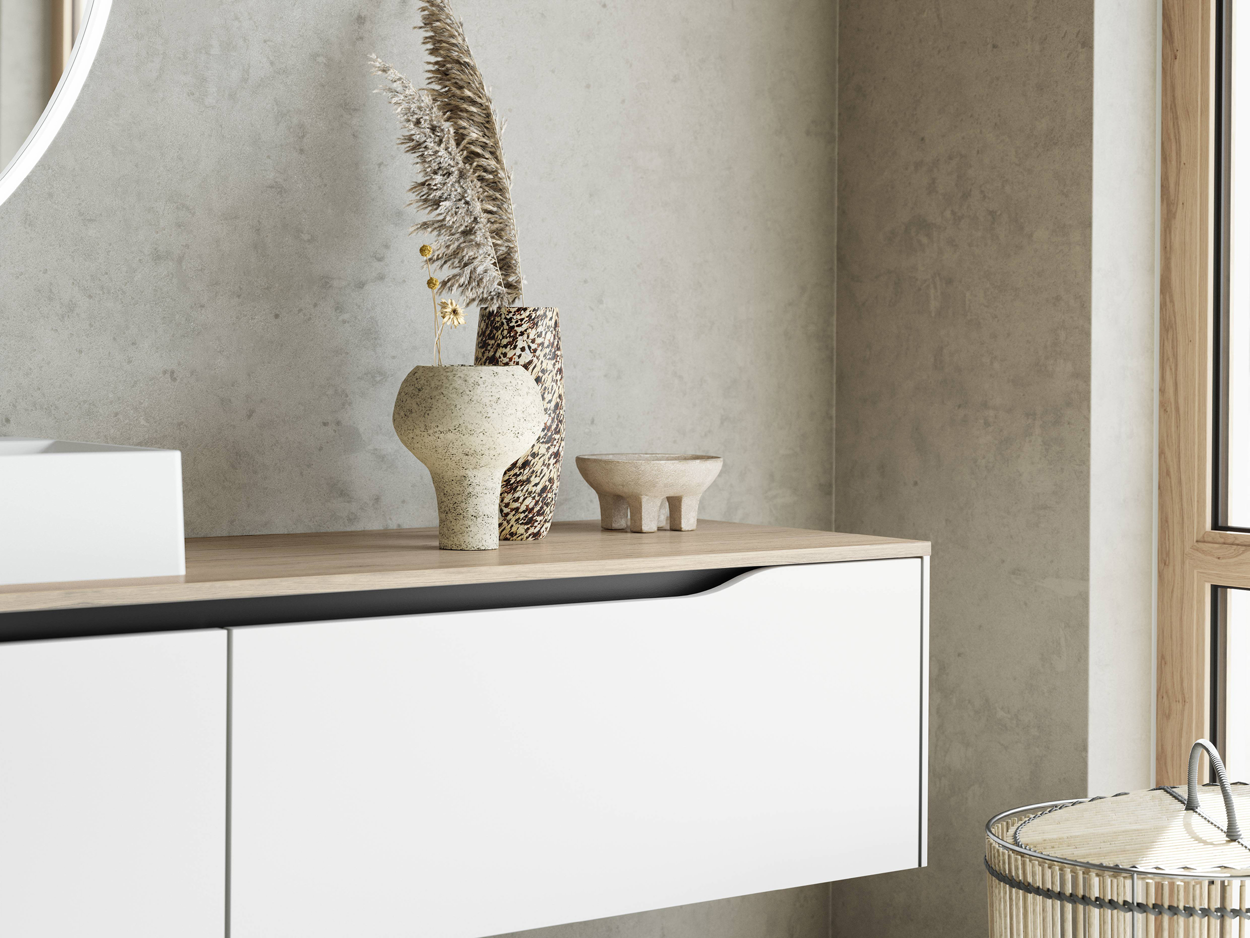 Frente lacado con revestimiento antihuellas, alrededor con canto de polímero en el color del frente.