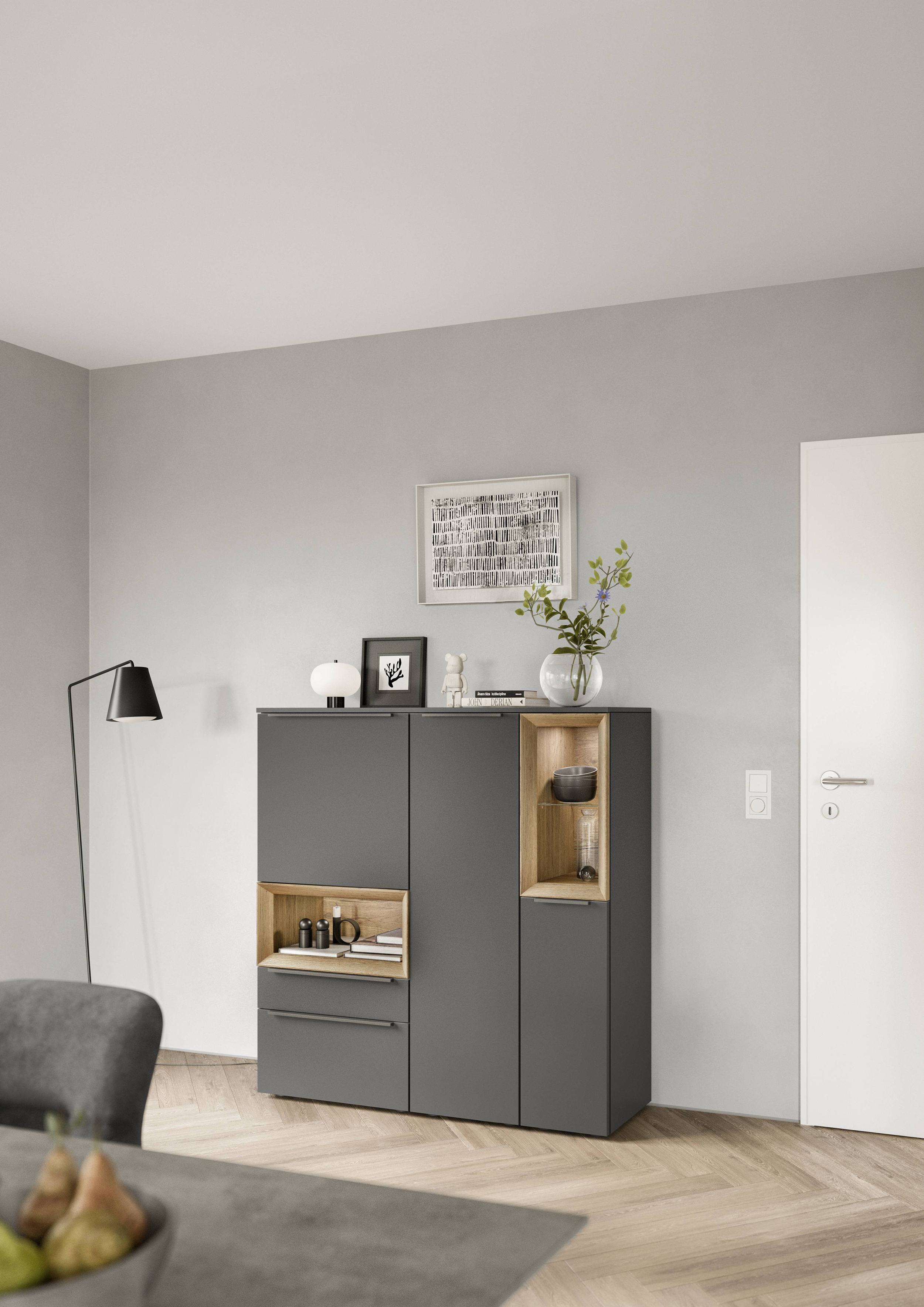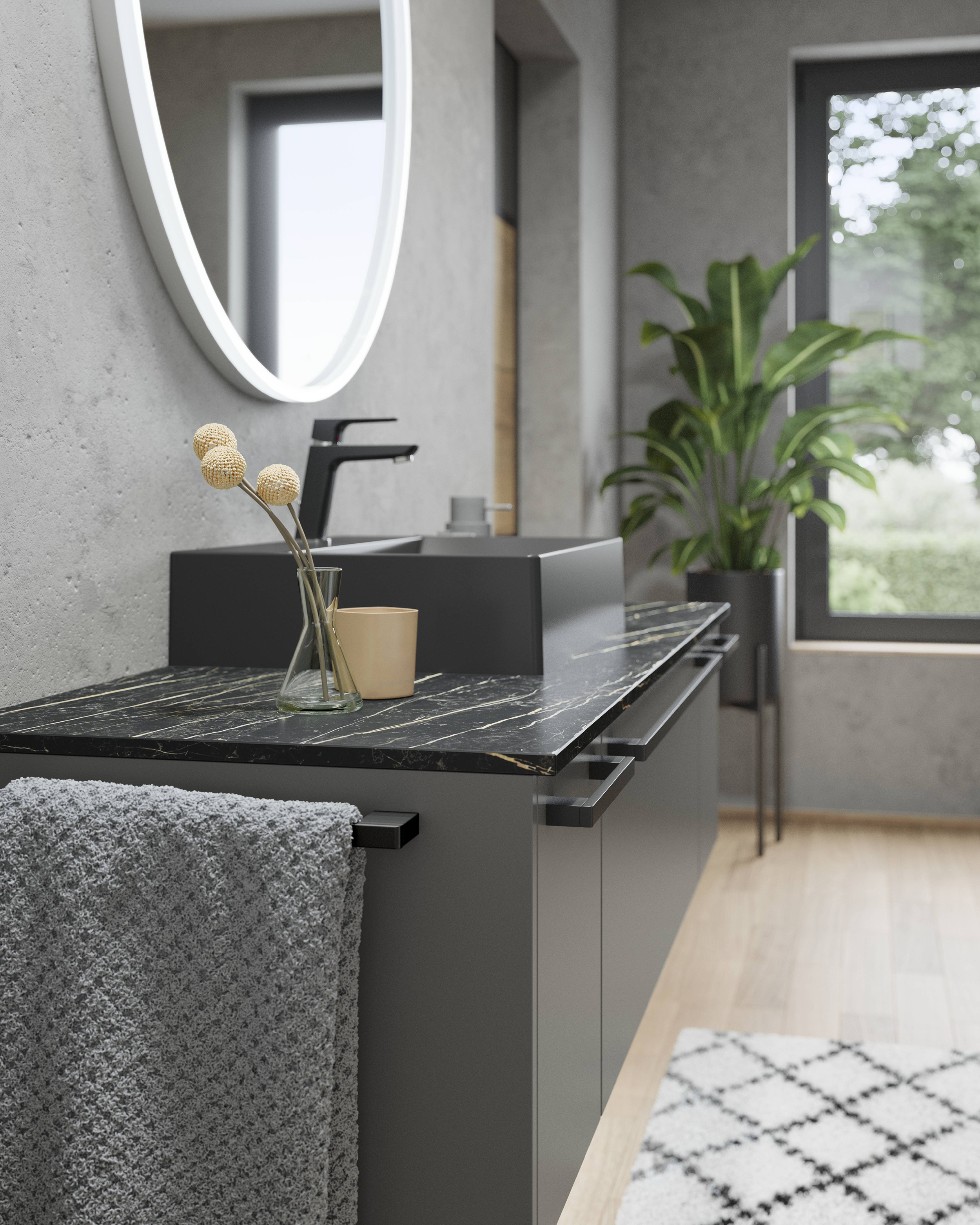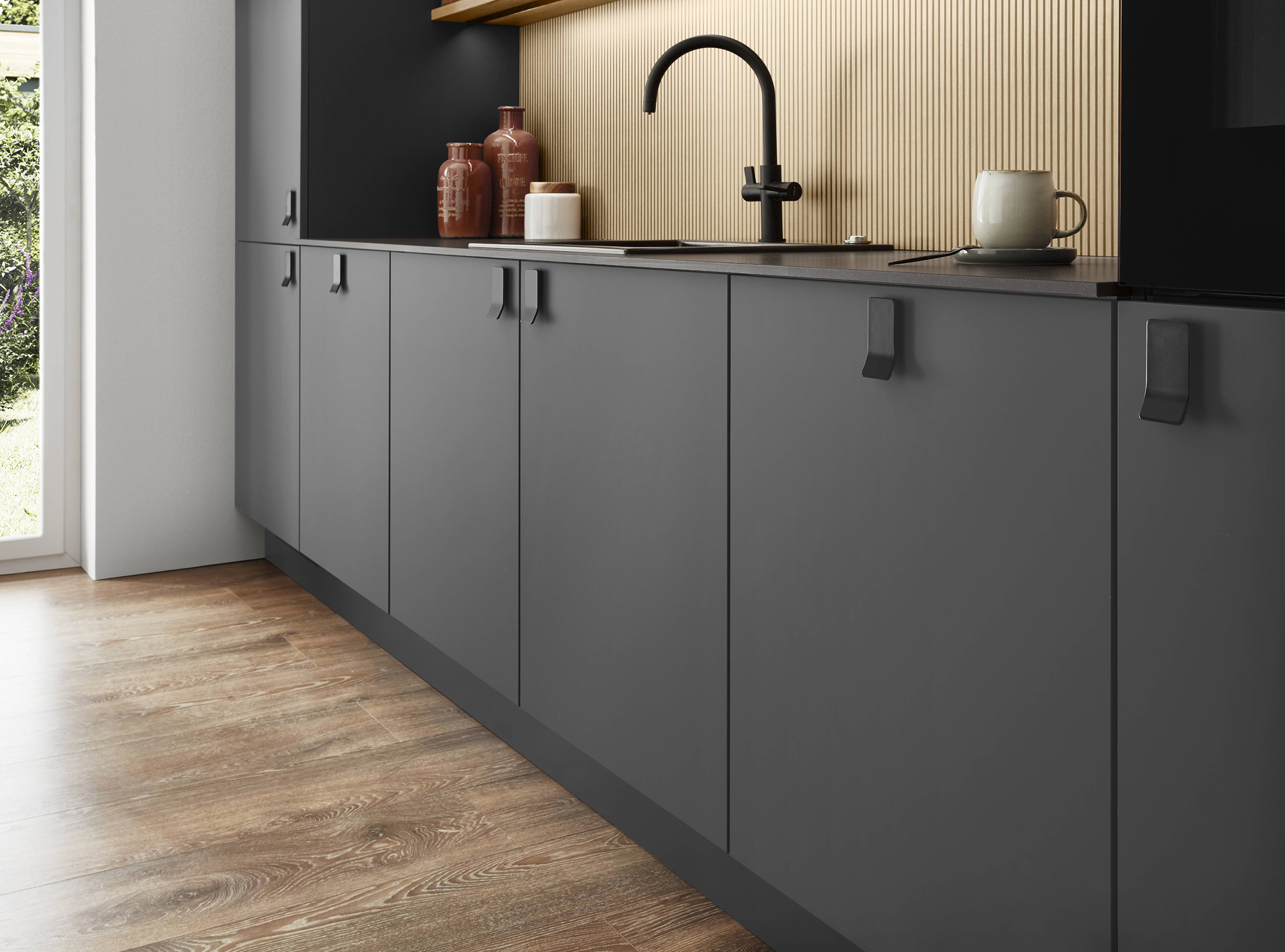 Frente lacado con revestimiento antihuellas, alrededor con canto de polímero en el color del frente.