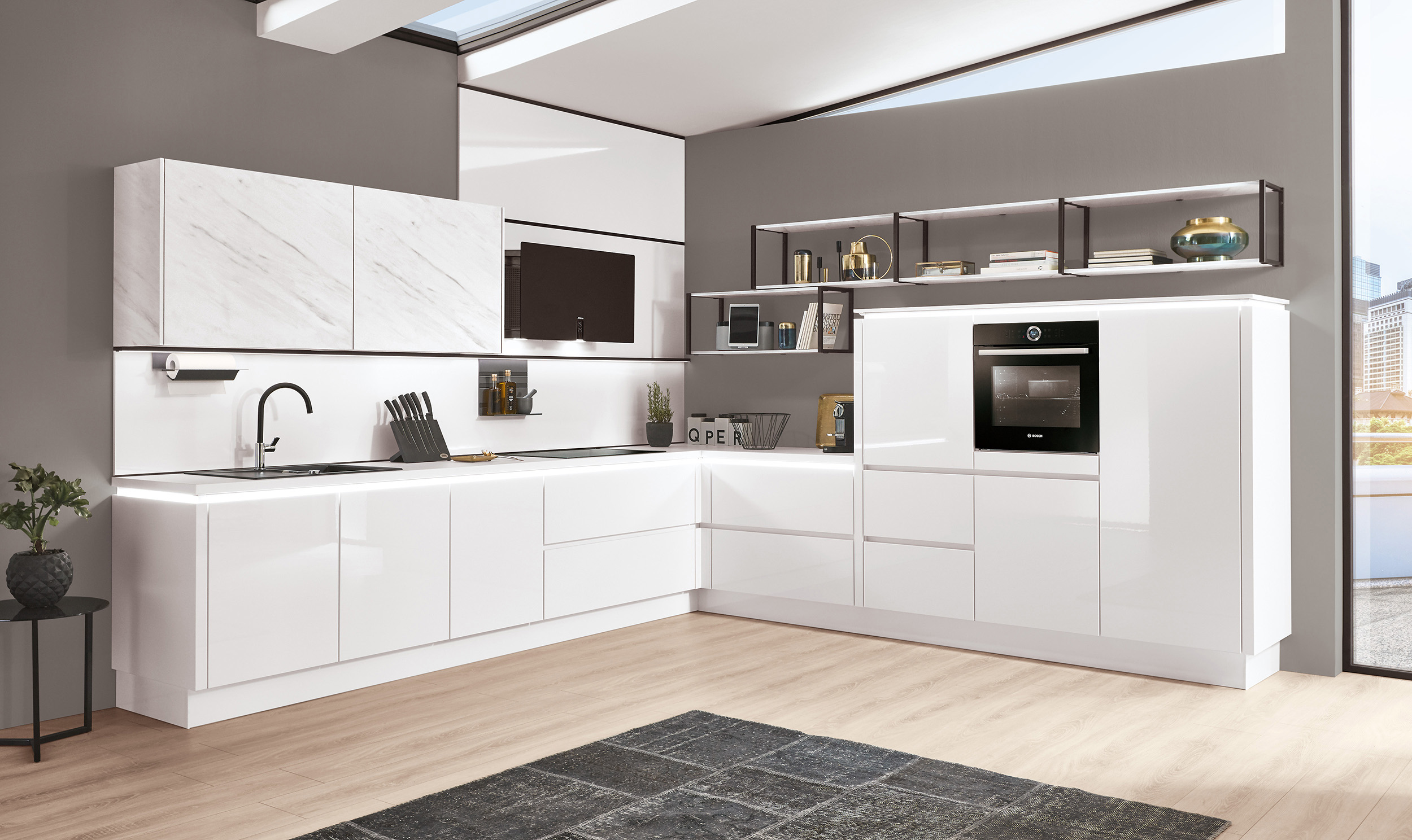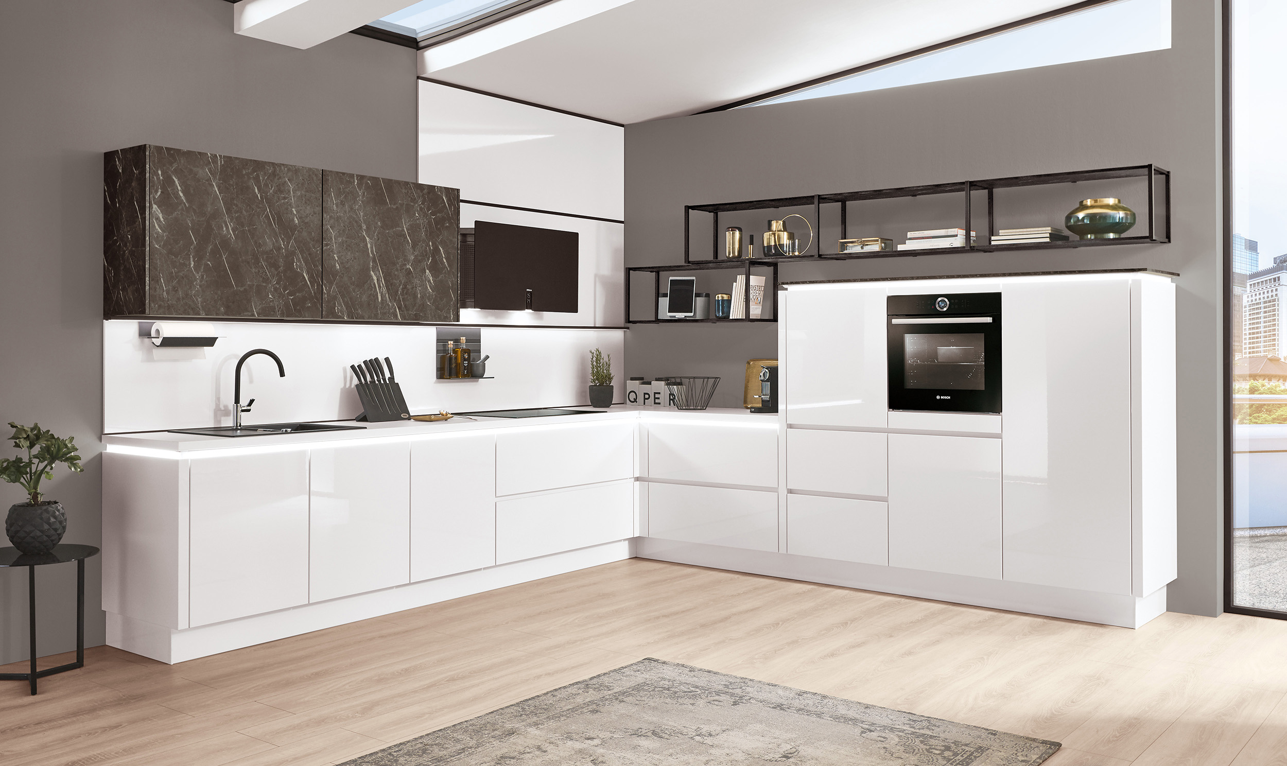 Frente postformado recubierto con lámina PET con lacado ultravioleta, horizontal con canto de polímero en el color del frente.