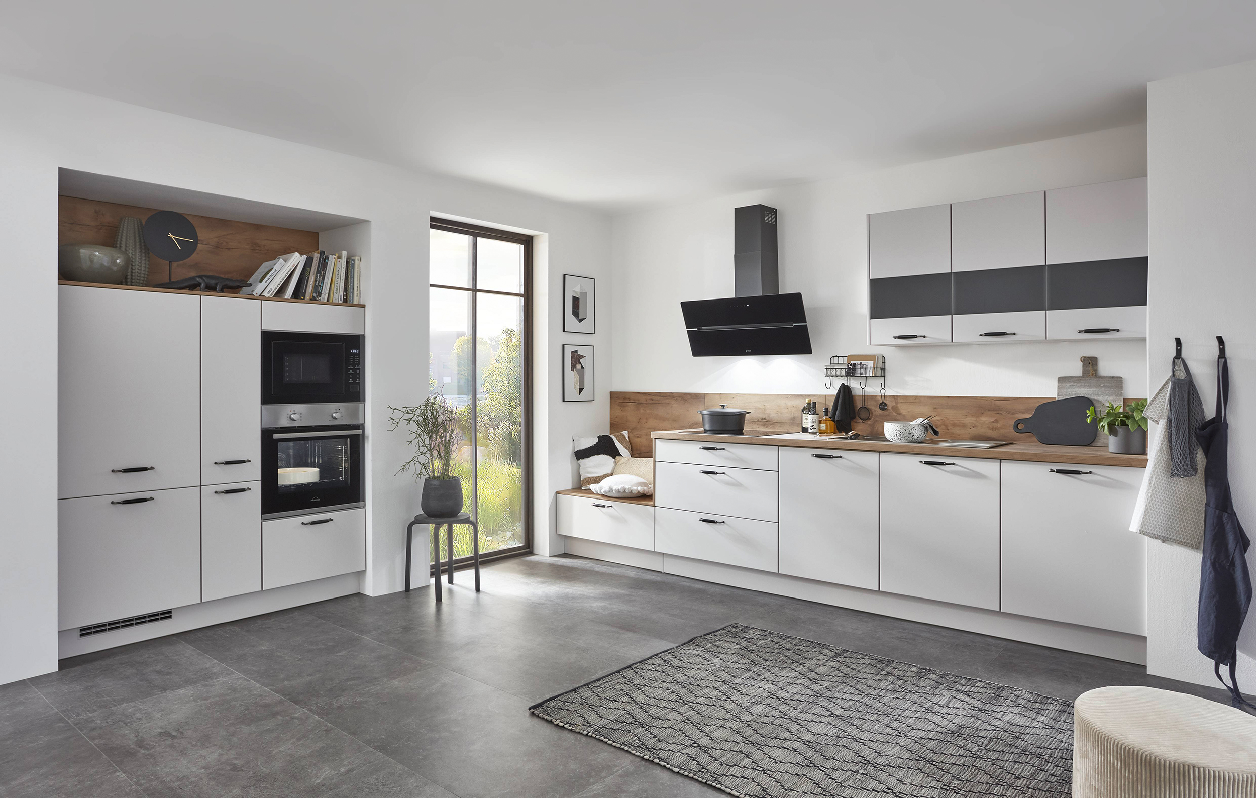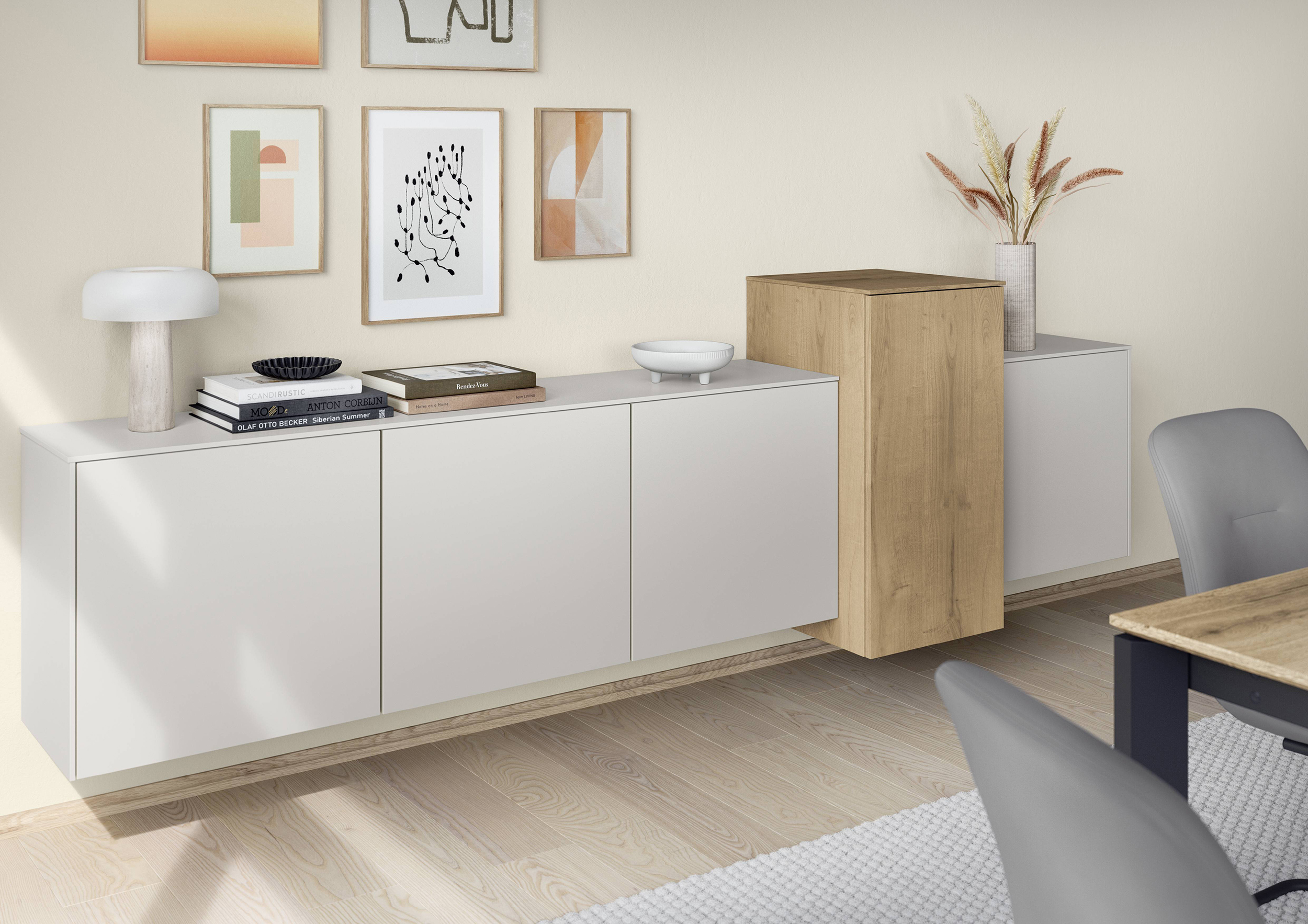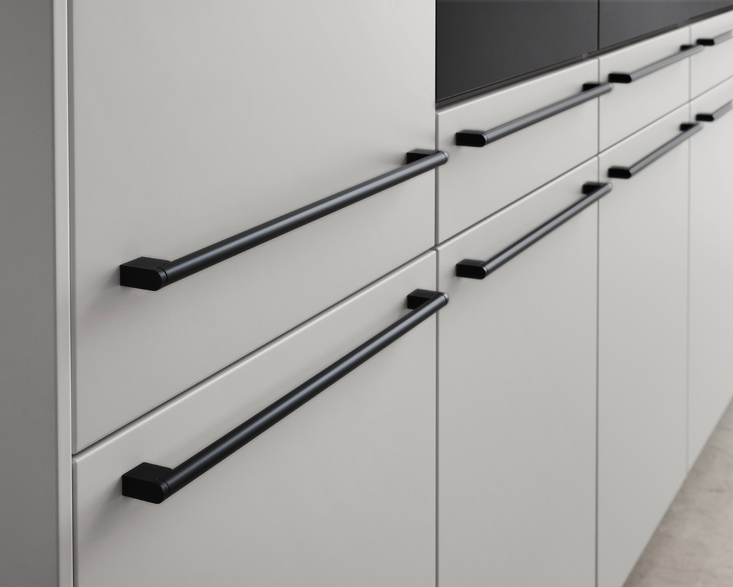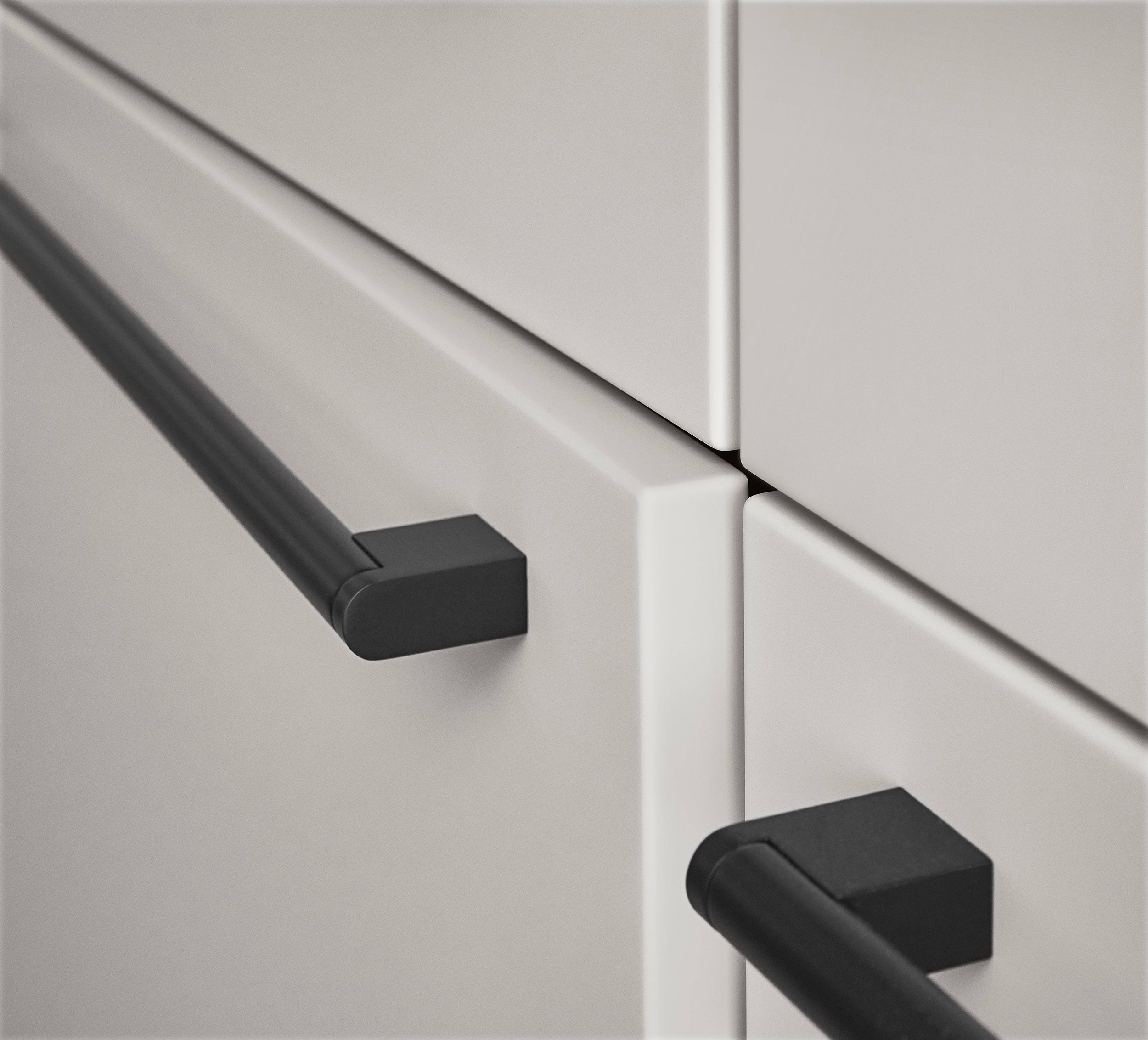 Frente lacado con revestimiento antihuellas en material de base MDF.