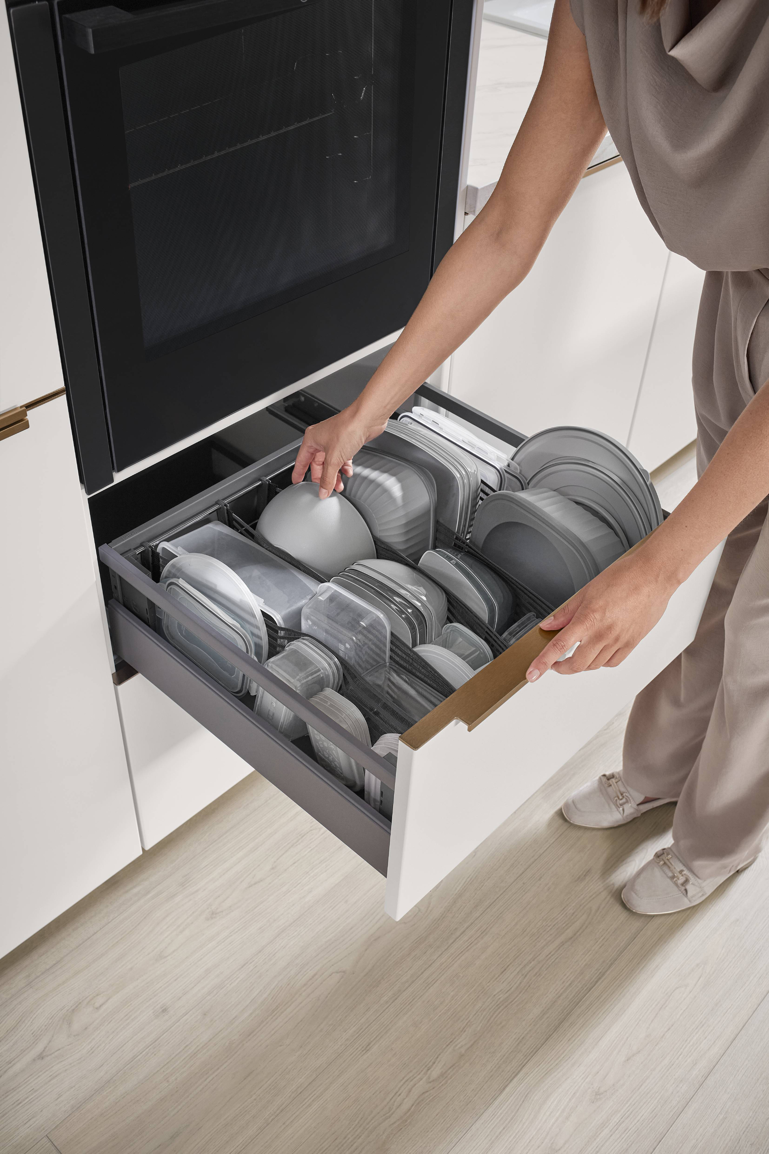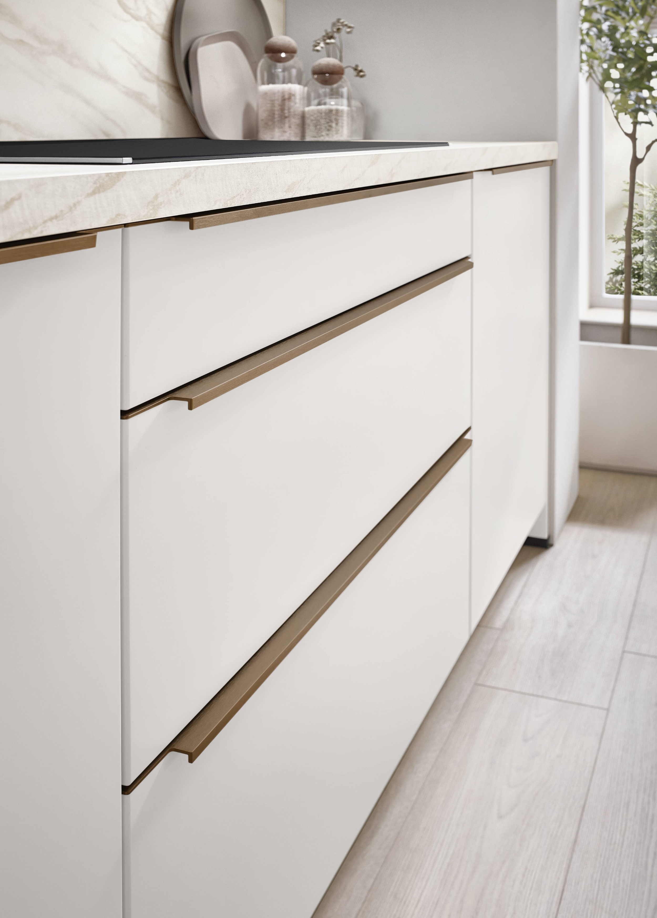 Frente lacado con revestimiento antihuellas en material de base MDF.