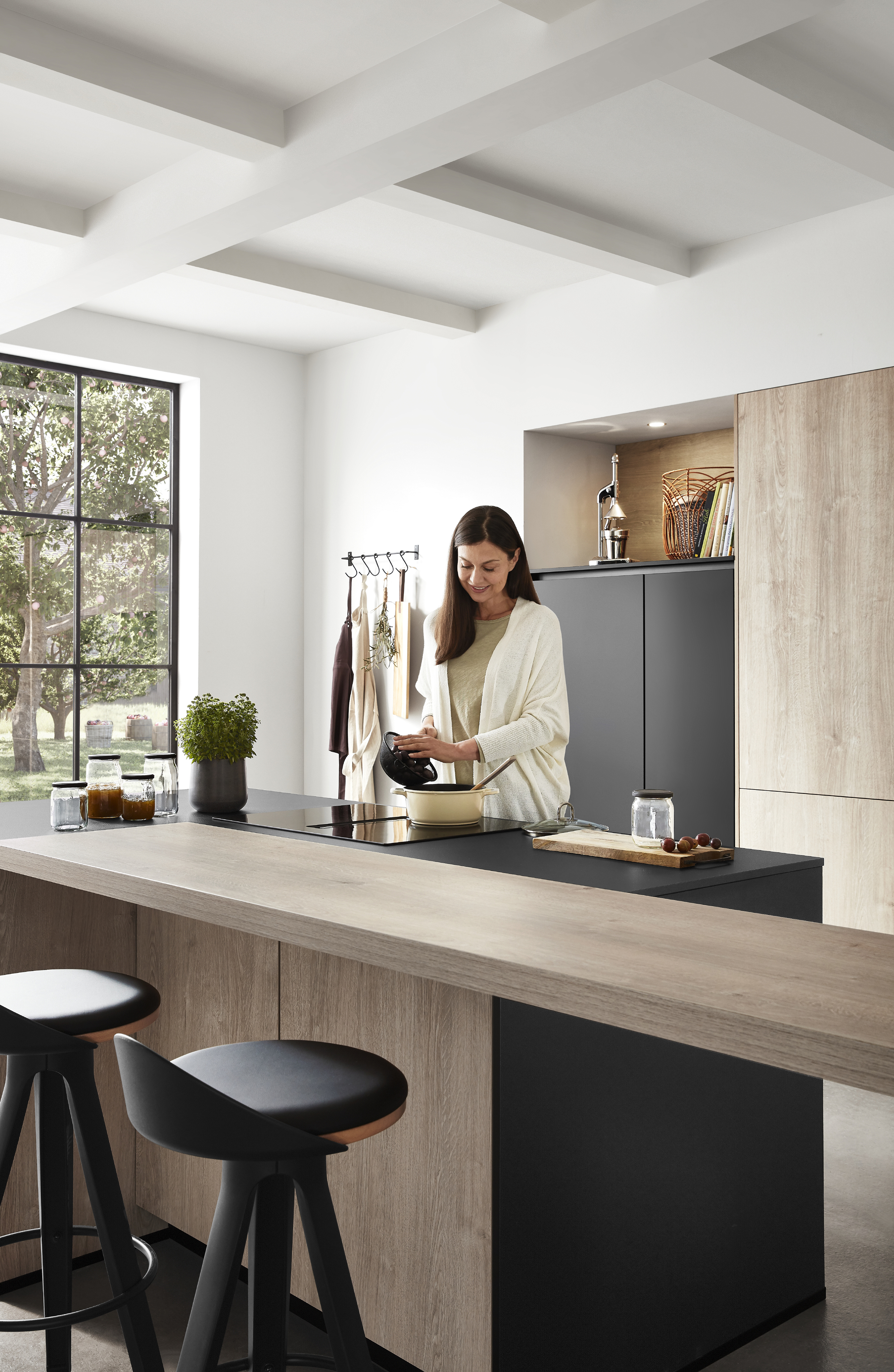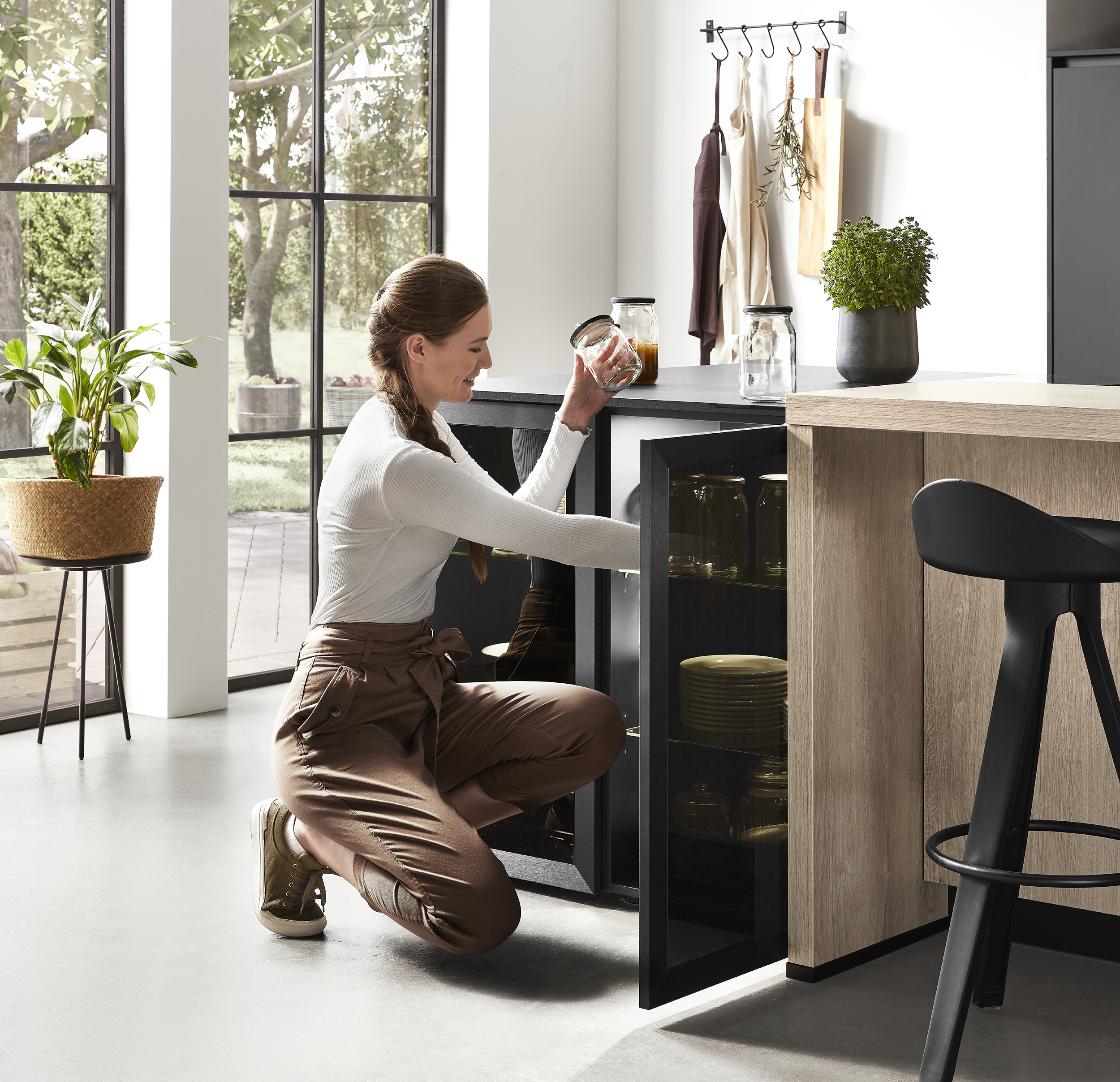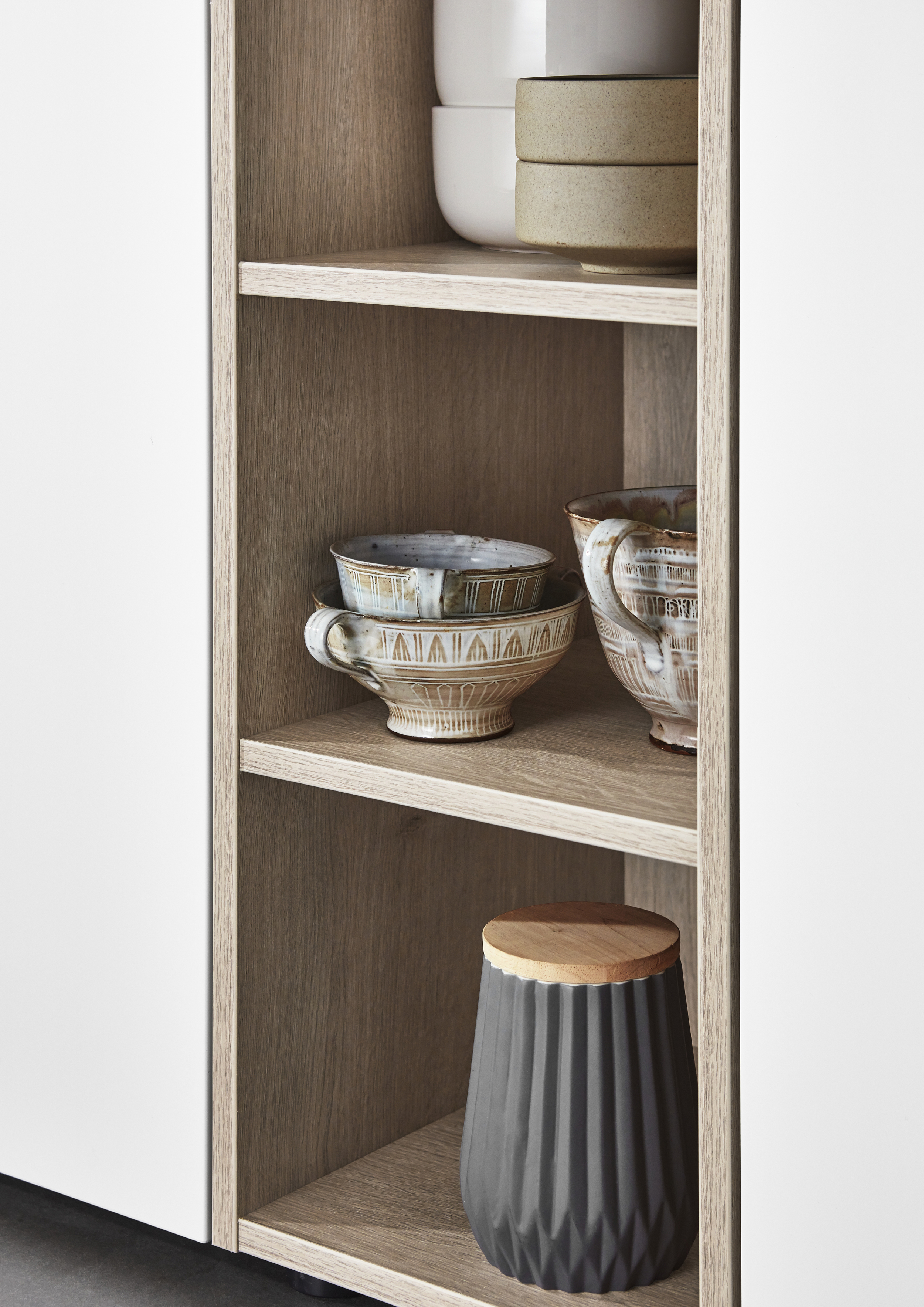 Frente de laminado lacado con revestimiento antihuellas, alrededor con canto de polímero en el color del frente. Lado interior de la puerta en el color del frente.