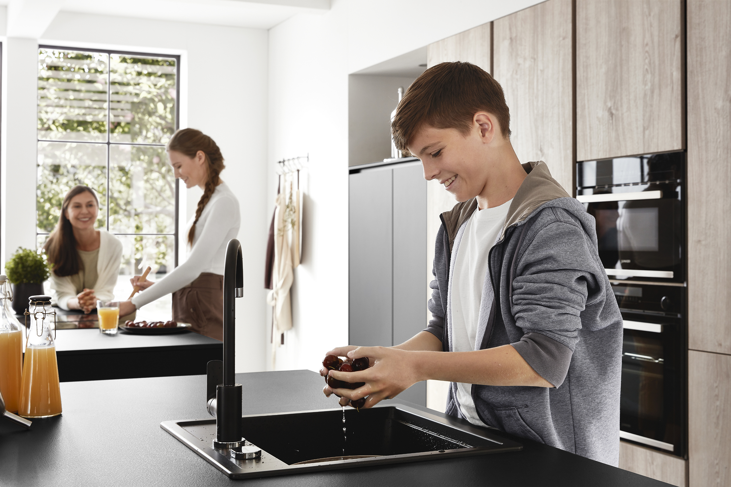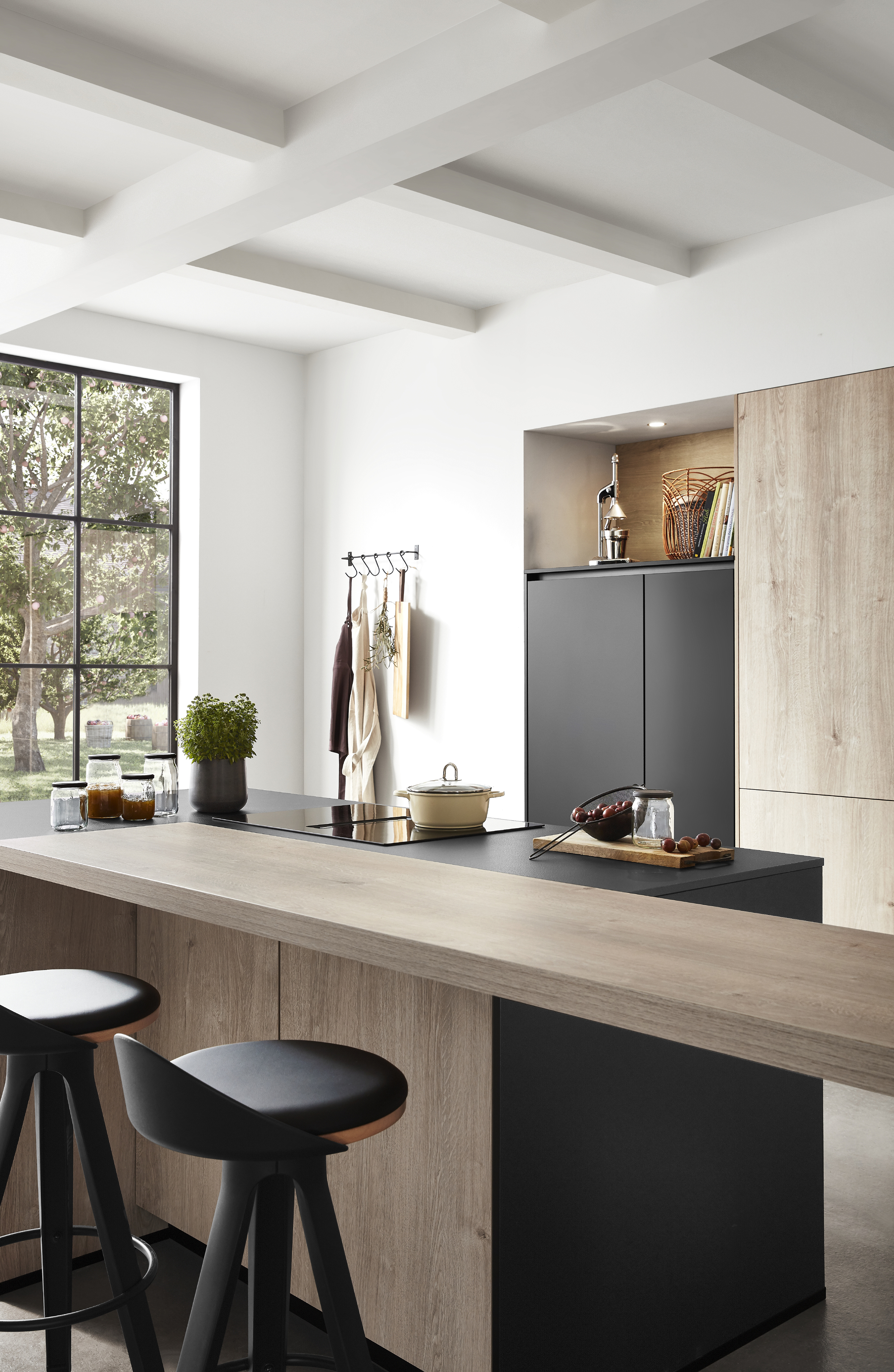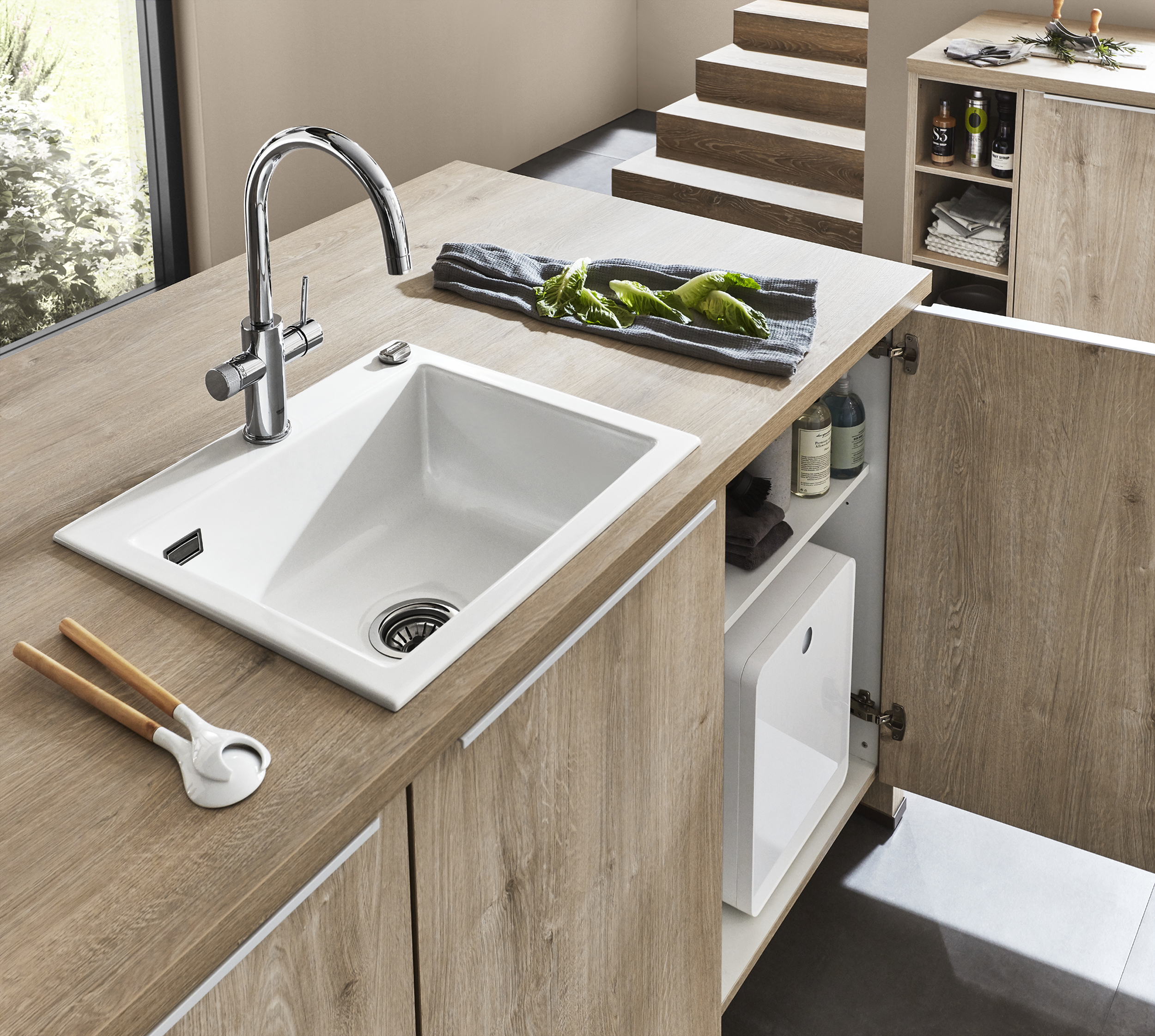 Frente de laminado lacado con revestimiento antihuellas, alrededor con canto de polímero en el color del frente. Lado interior de la puerta en el color del frente.